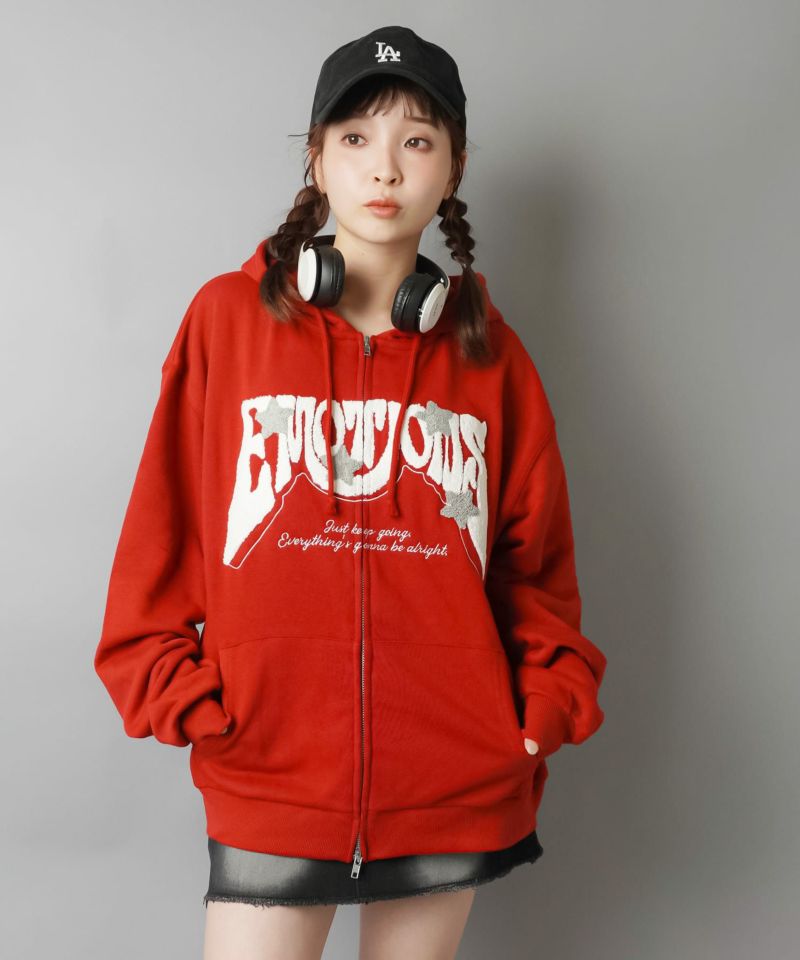 【インパクトのあるフロントロゴが目を引く★Wジップパーカー】