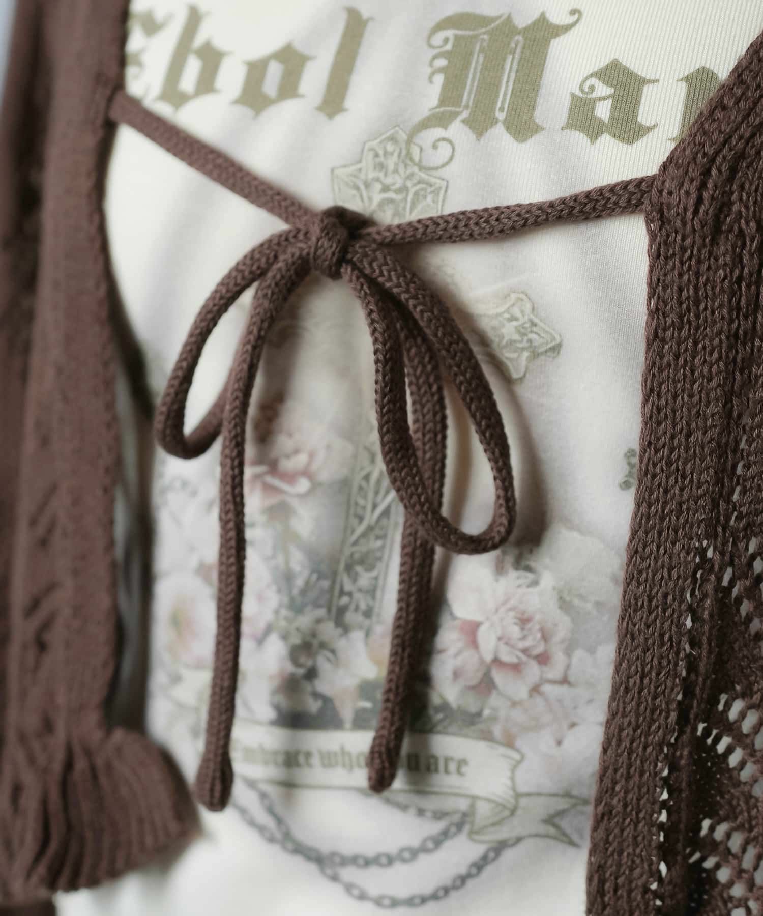 透かし編みニットボレロ/フリルリボン