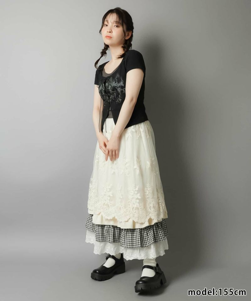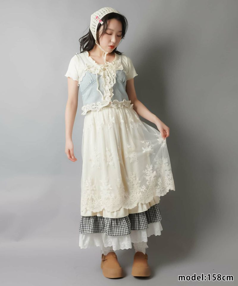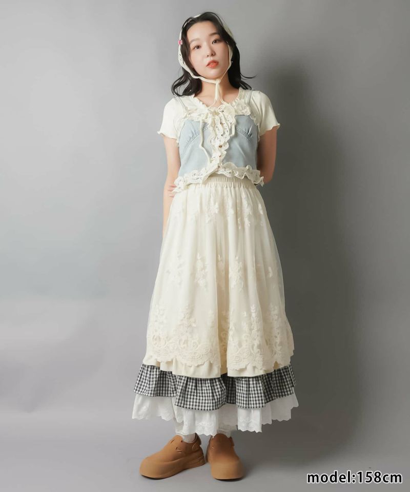 【レトロな雰囲気が可愛い♡異素材レイヤードロングスカート】
