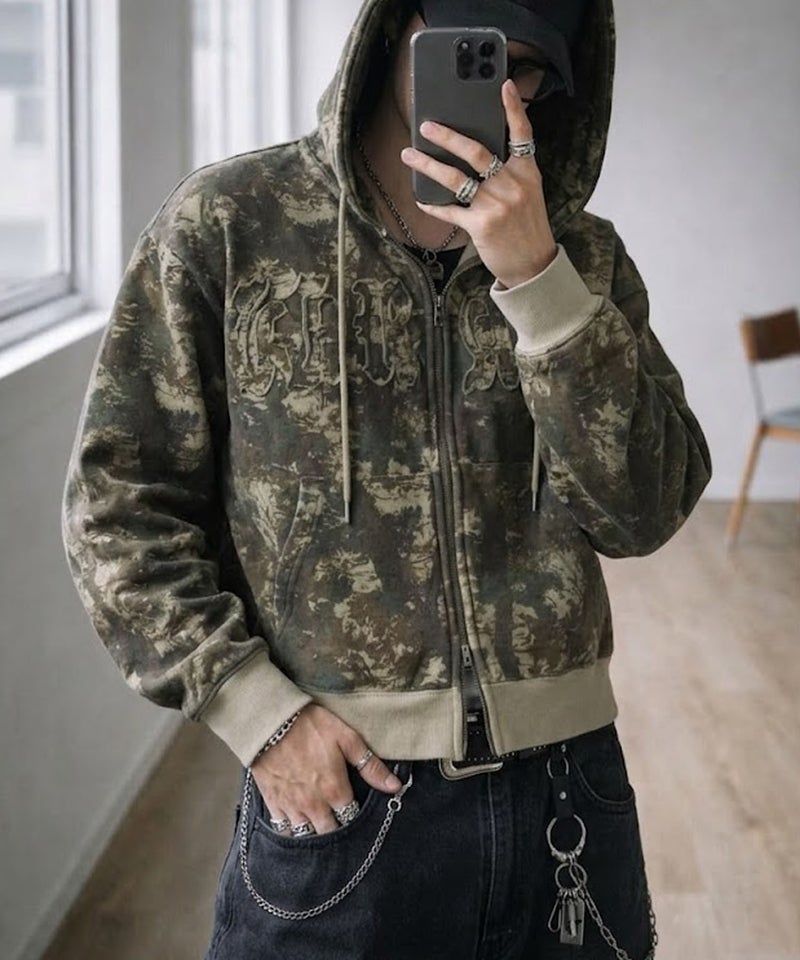 ワークテイストを感じさせる 短丈ダブルジップパーカー。