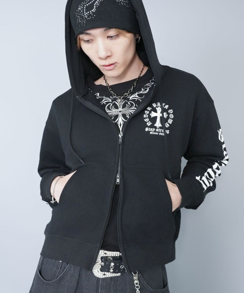 トレンド感あふれる 短丈ダブルジップパーカー。