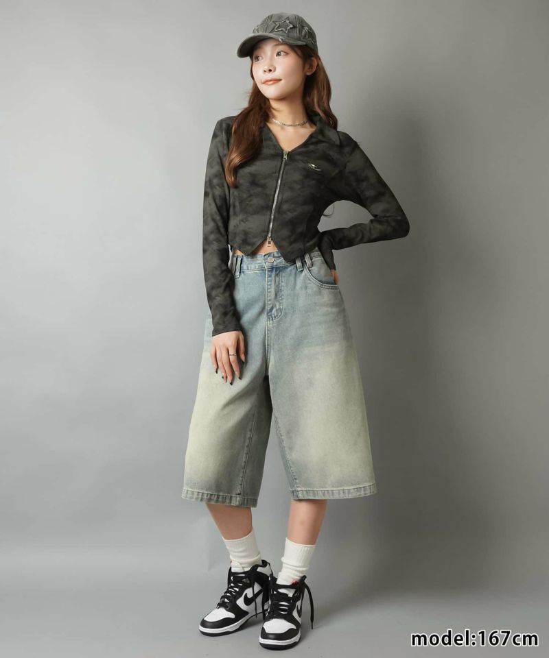 染めたような色味で一枚で高見え! 長袖ジップカーディガン/ムラ染め風