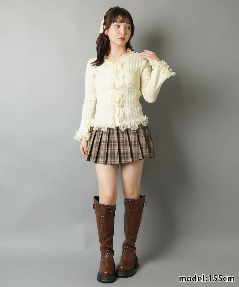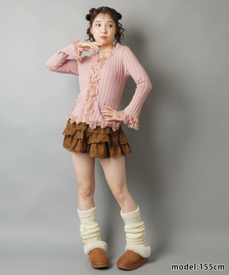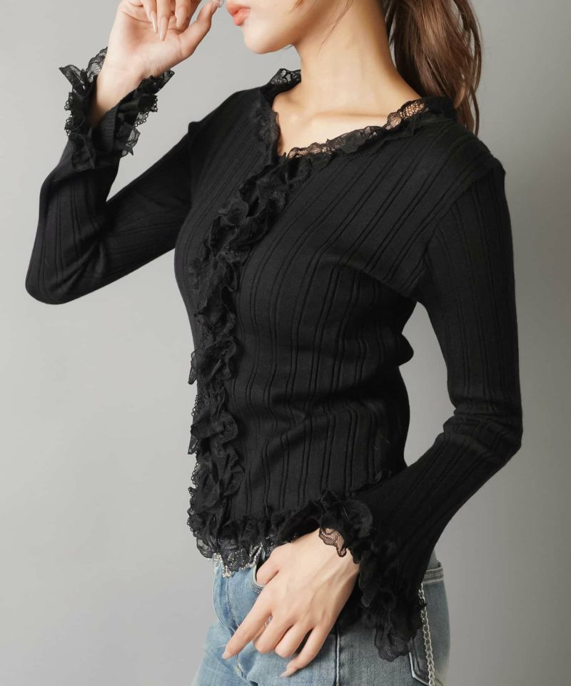 【立体感のあるリブと華やかなレースフリルがフェミニンさをプラス?】