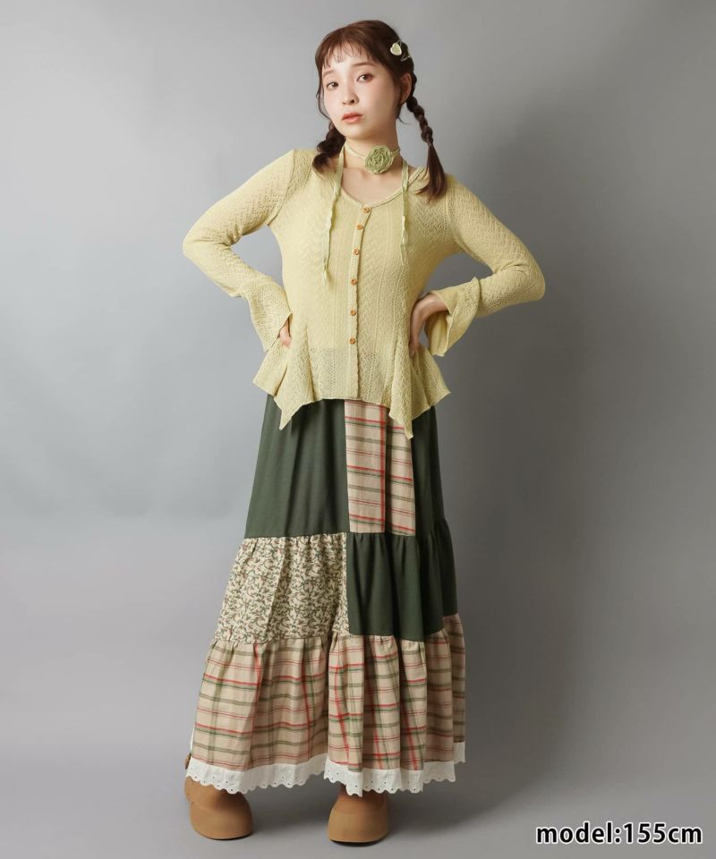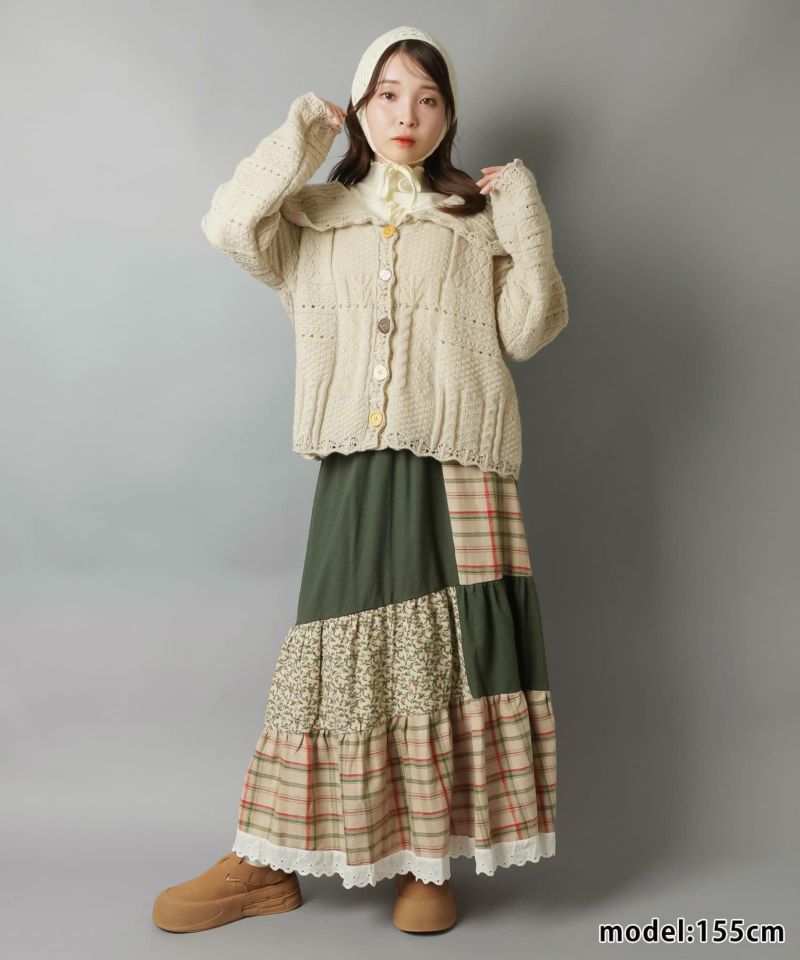 パッチワークロングスカート/チェック柄/小花柄/#NEO森ガール