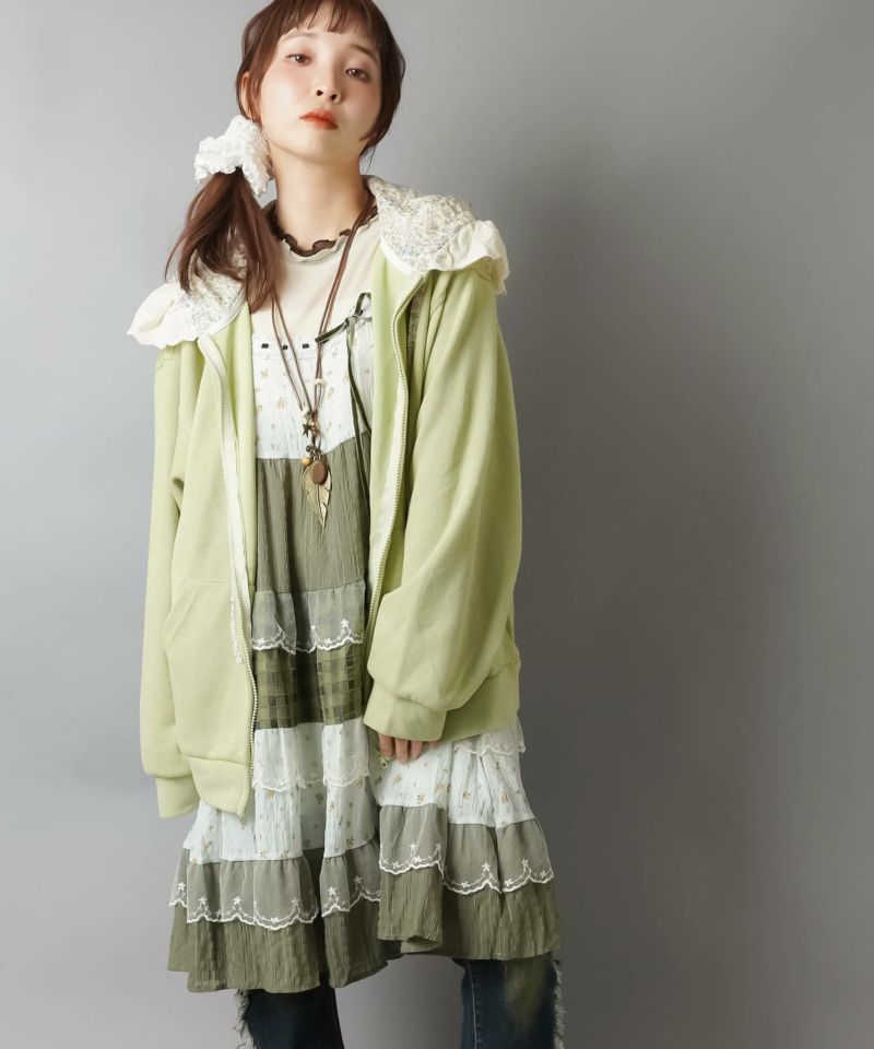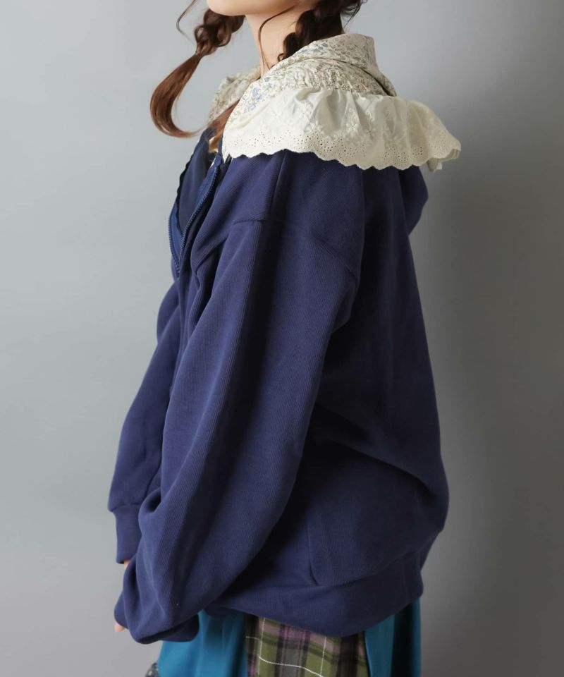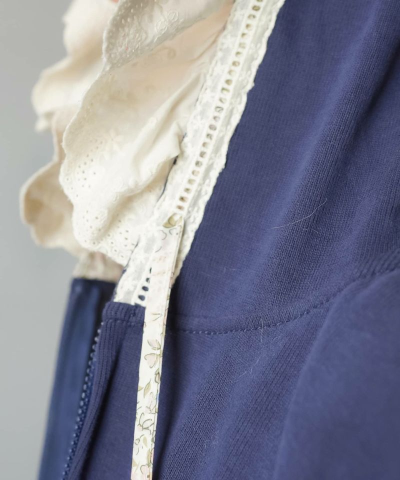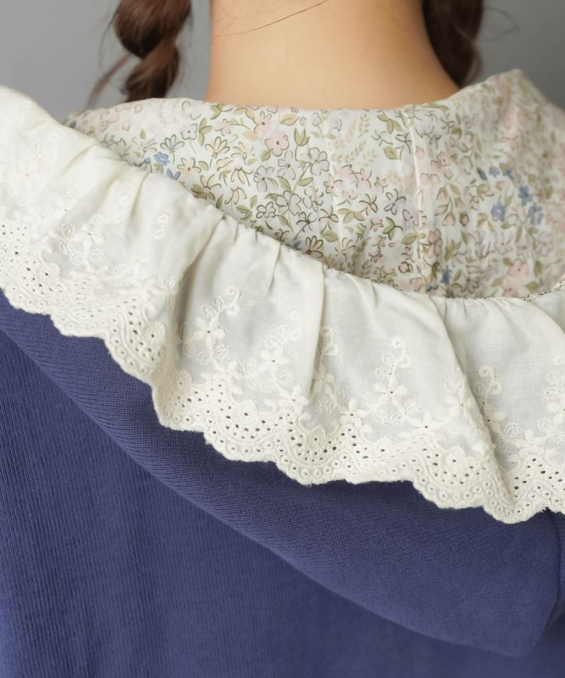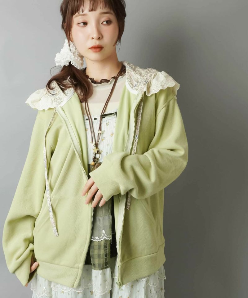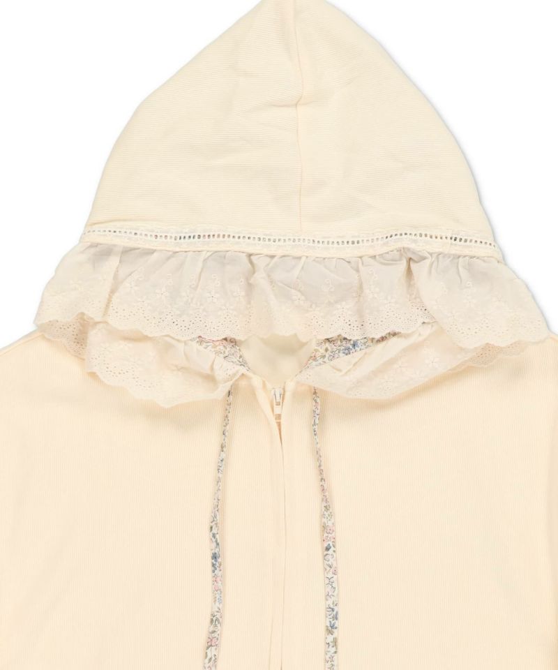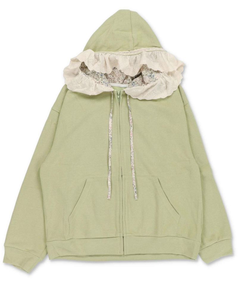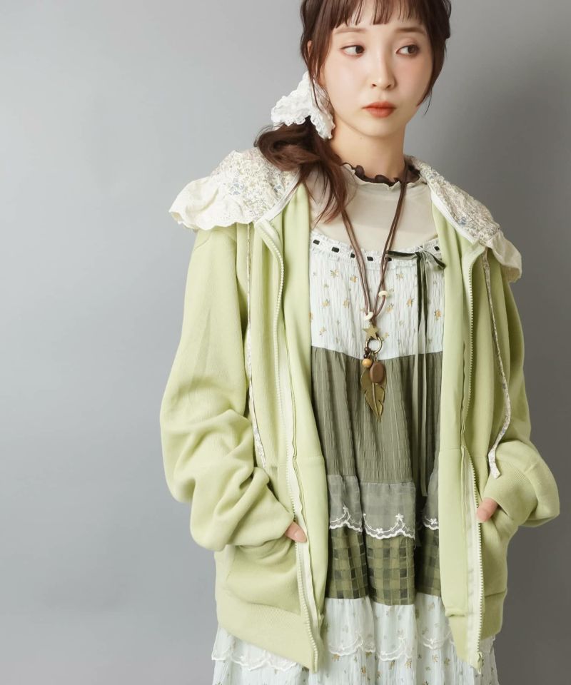 裏毛ジップパーカー/レース付きフード/小花柄/#NEO森ガール