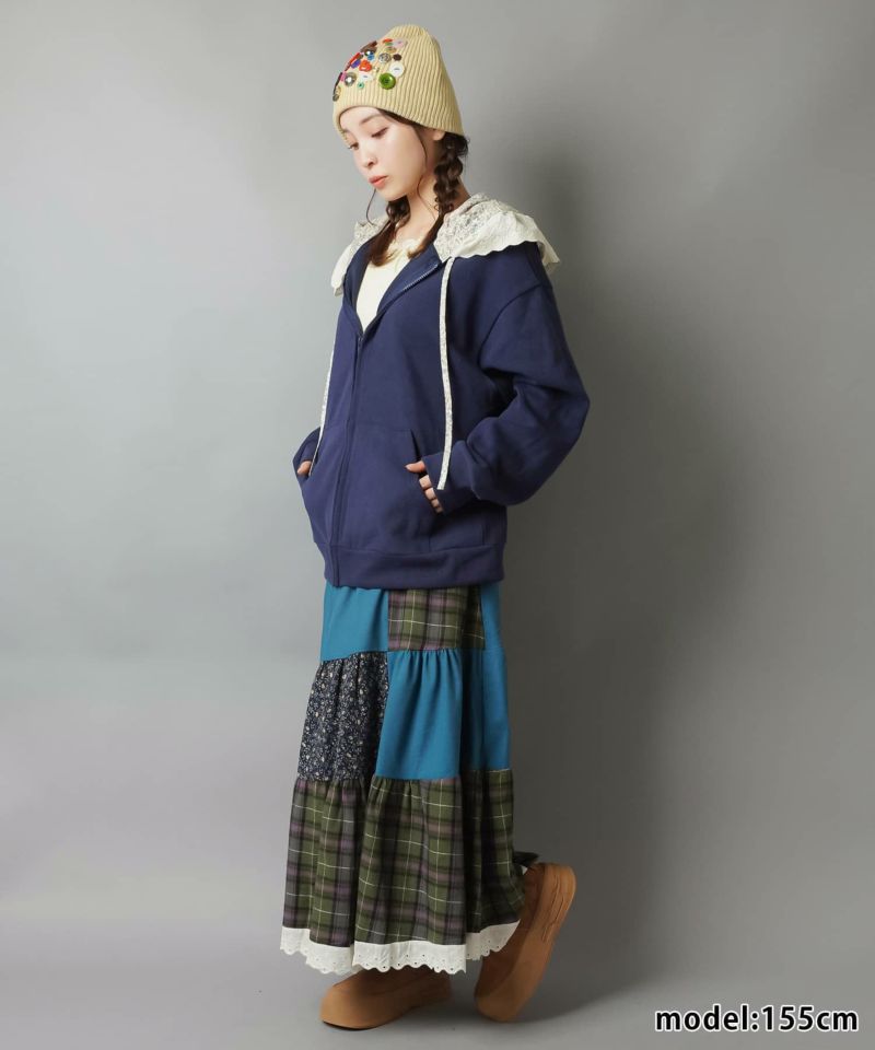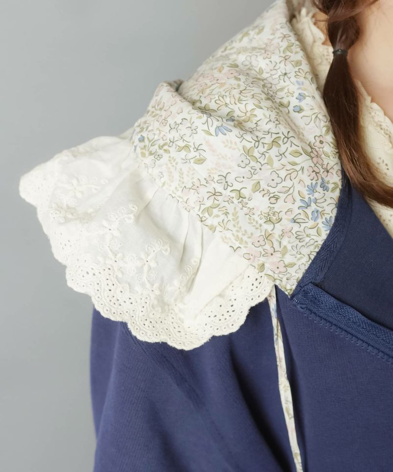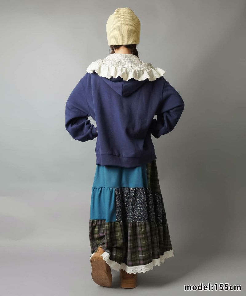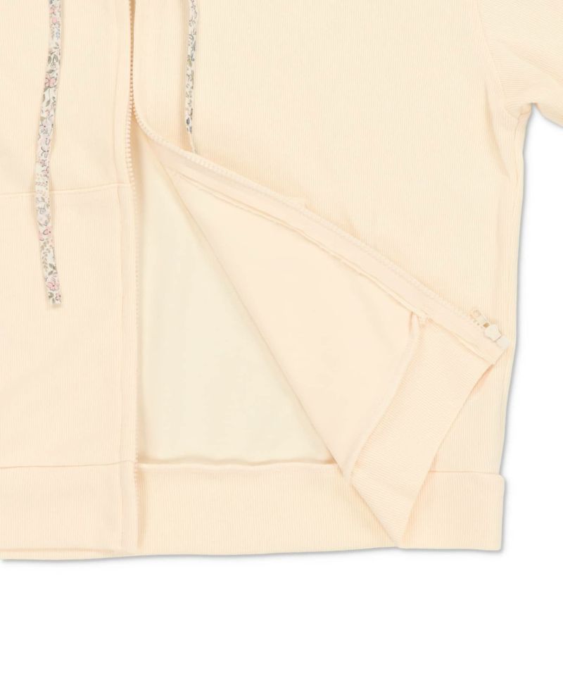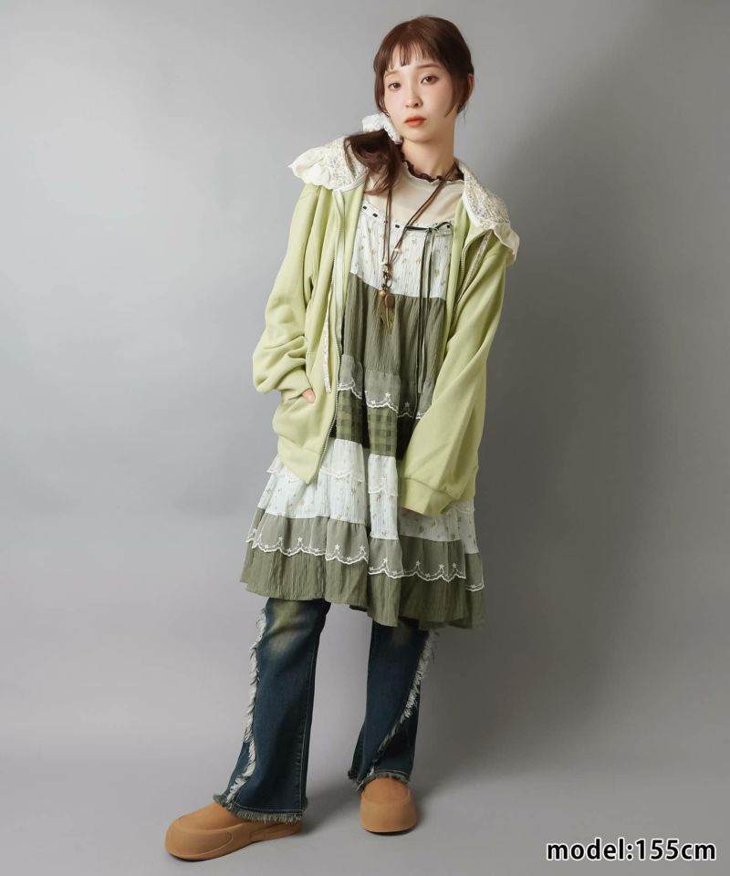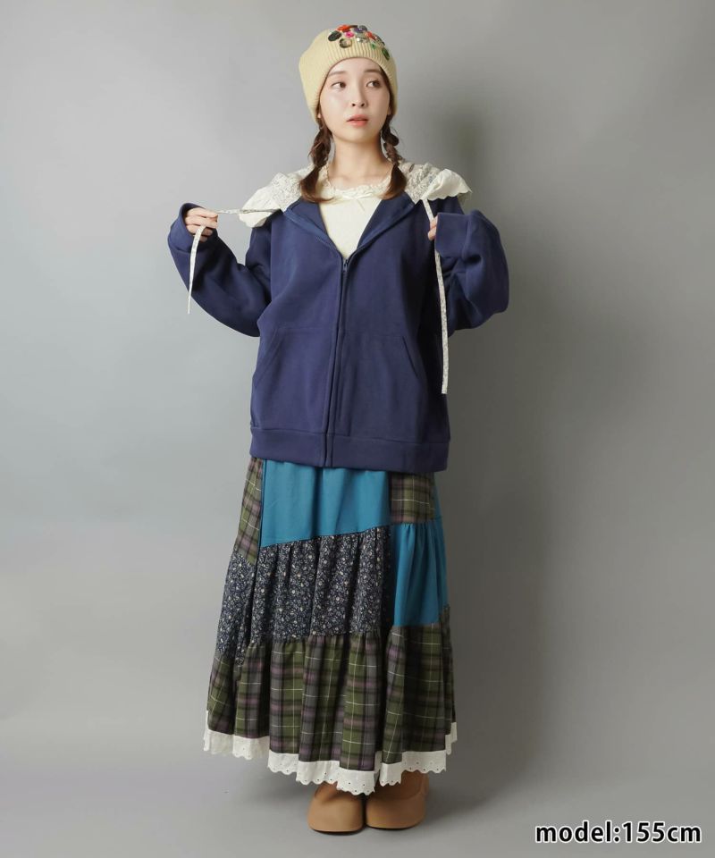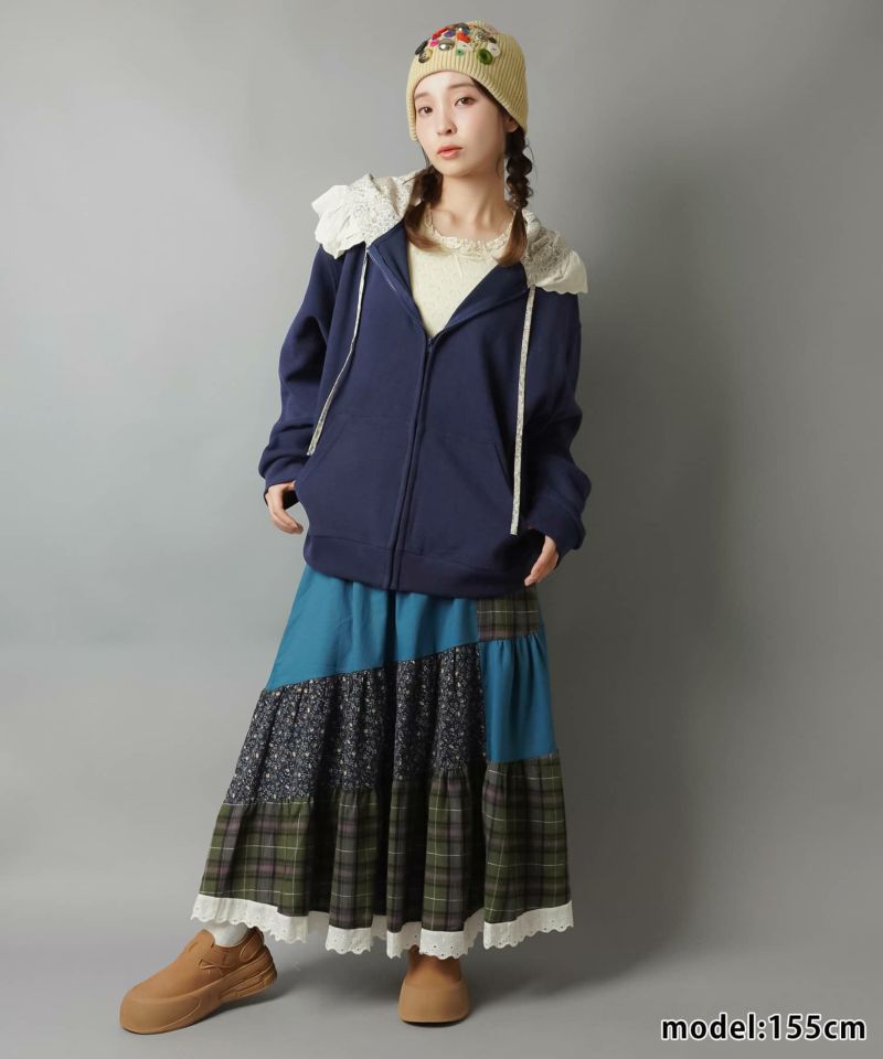 裏毛ジップパーカー/レース付きフード/小花柄/#NEO森ガール
