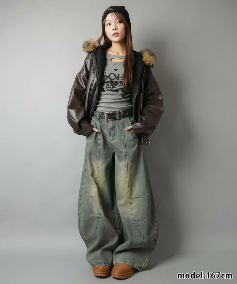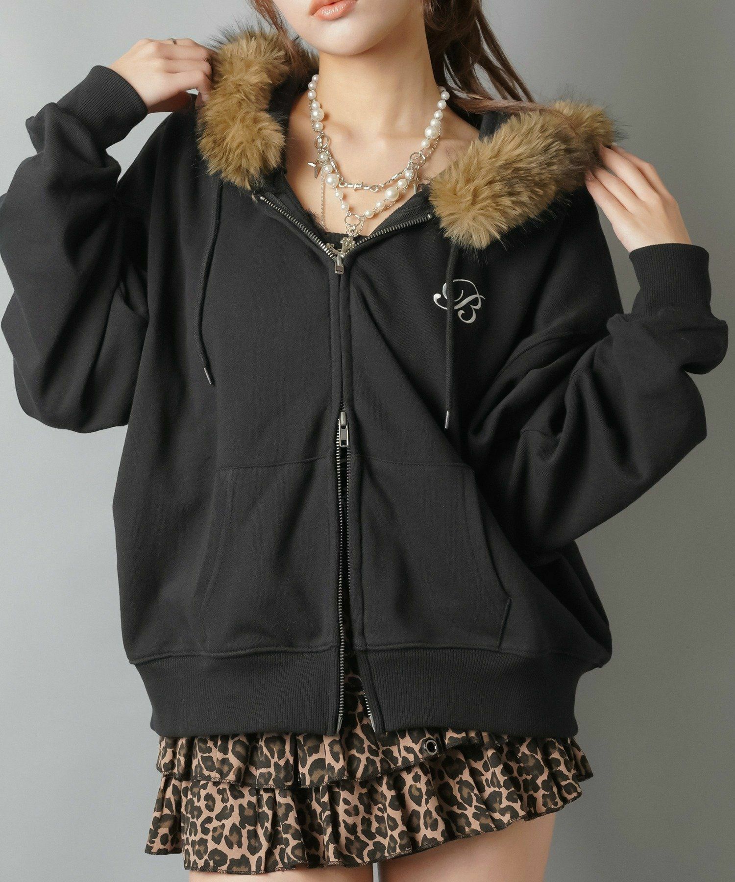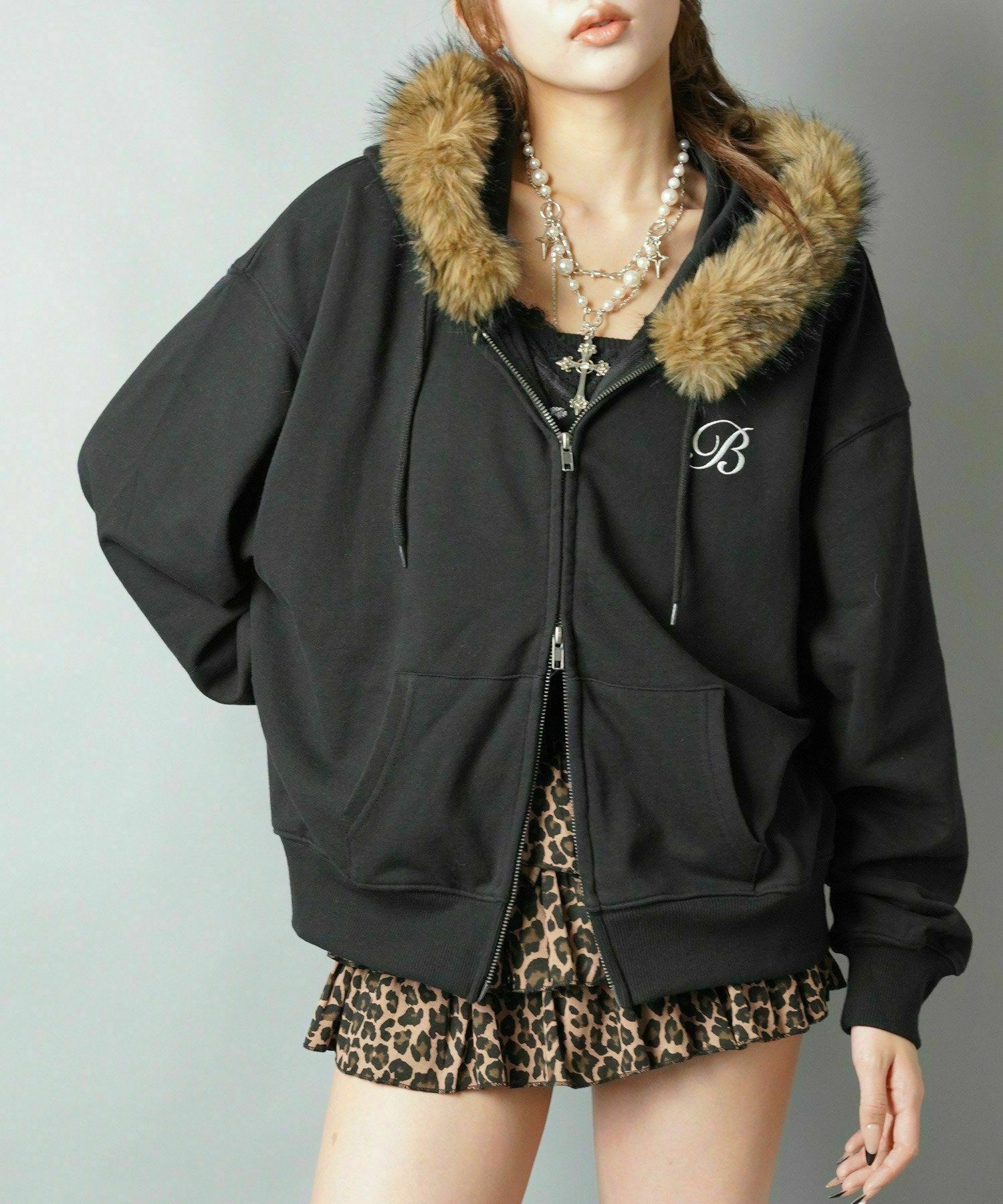 1:フードのフェイクファーがミックスでギャル感UP