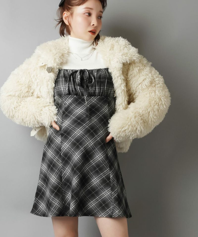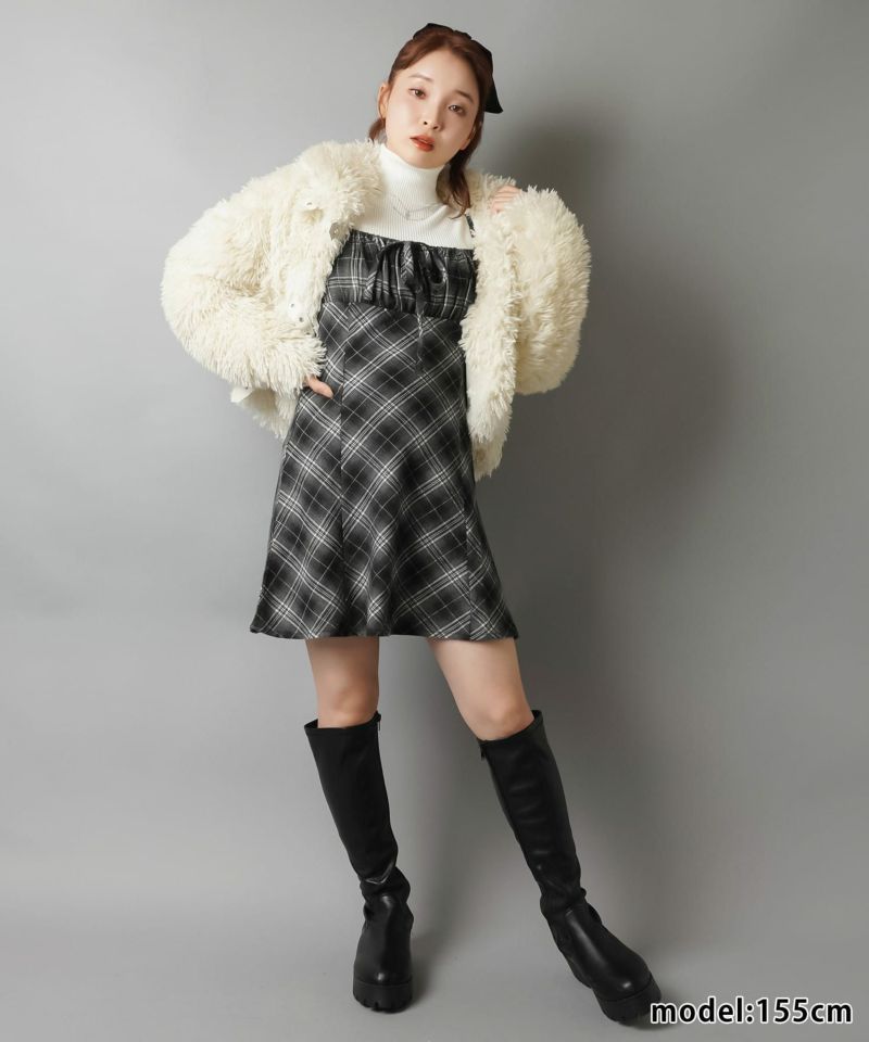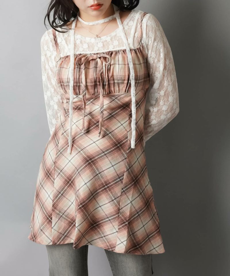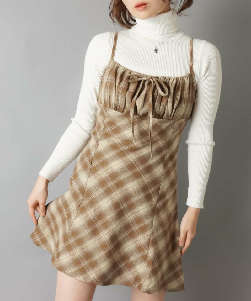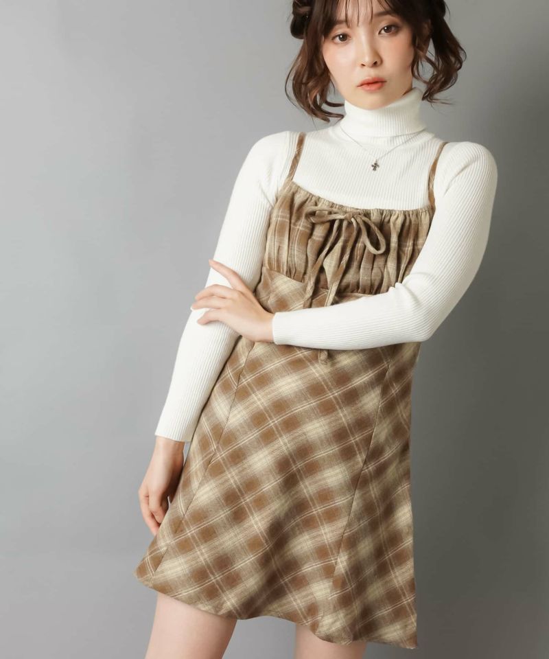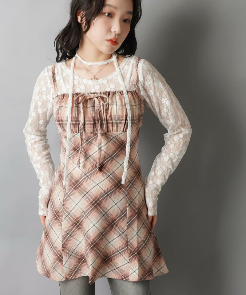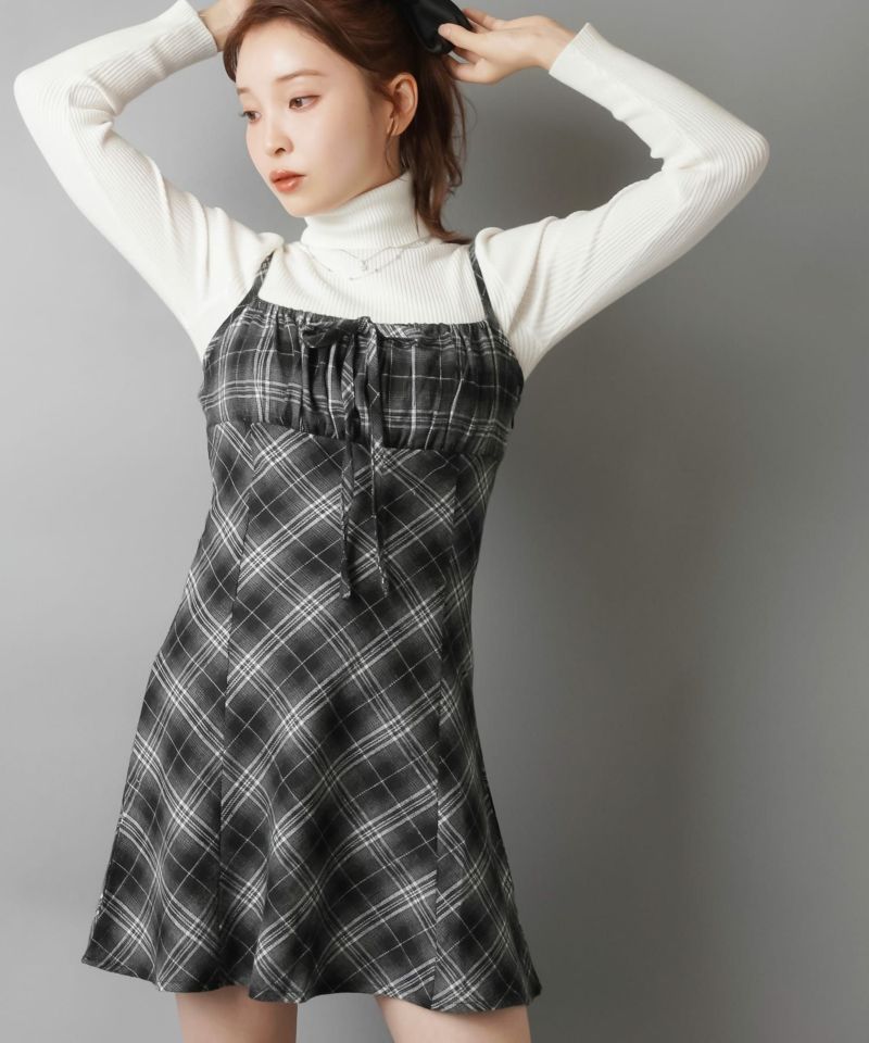 【レイヤードスタイルにピッタリなチェック柄×リボンが目を惹くミニキャミワンピ?】