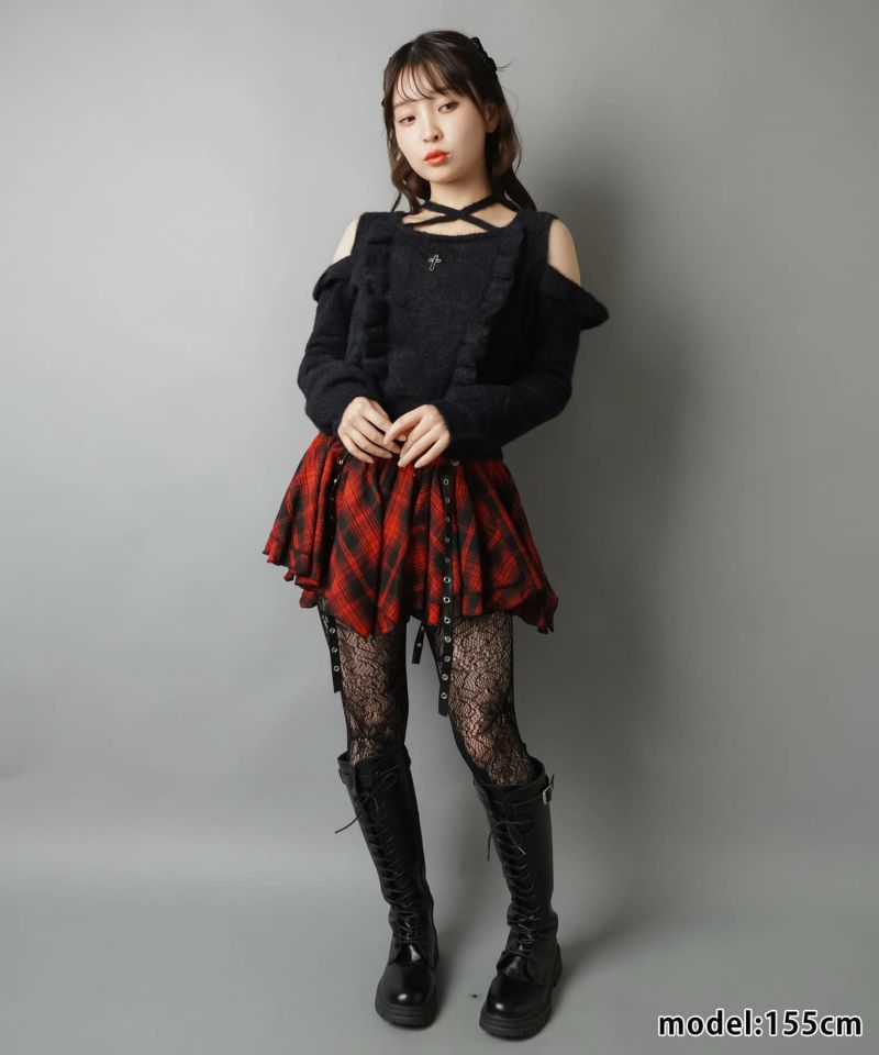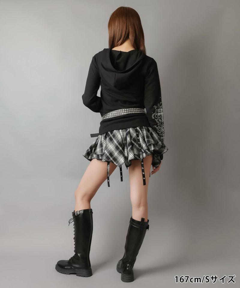 2:フロントのベルトでデザイン性のあるミニスカート