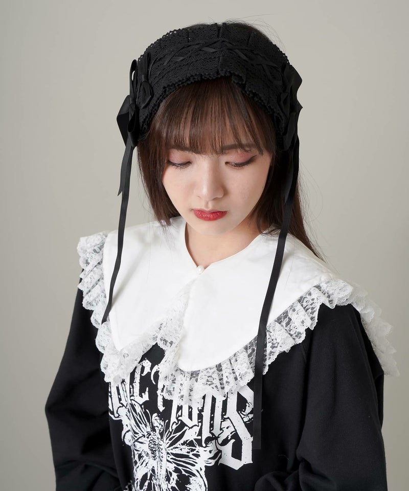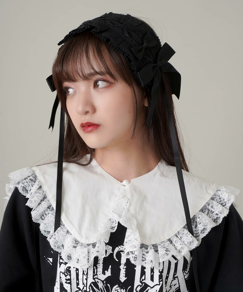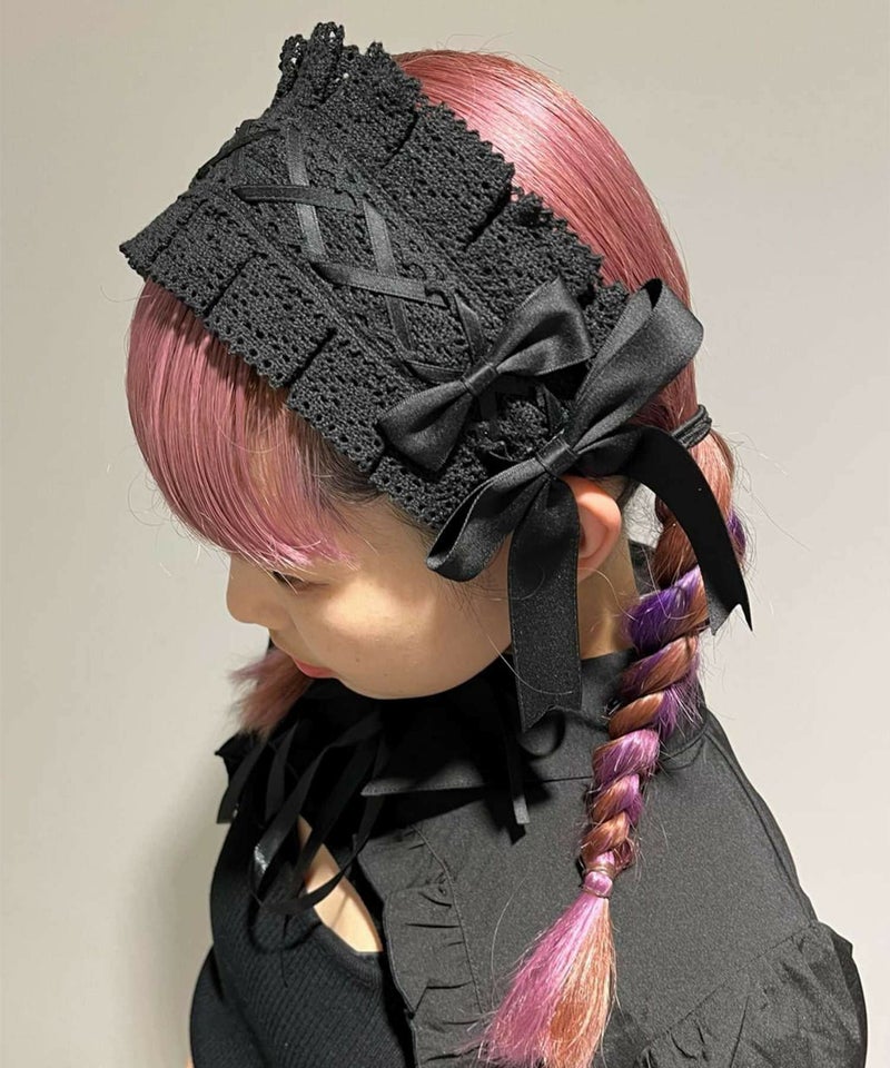 幅広、リボンレースが華やかなヘッドアクセサリー。