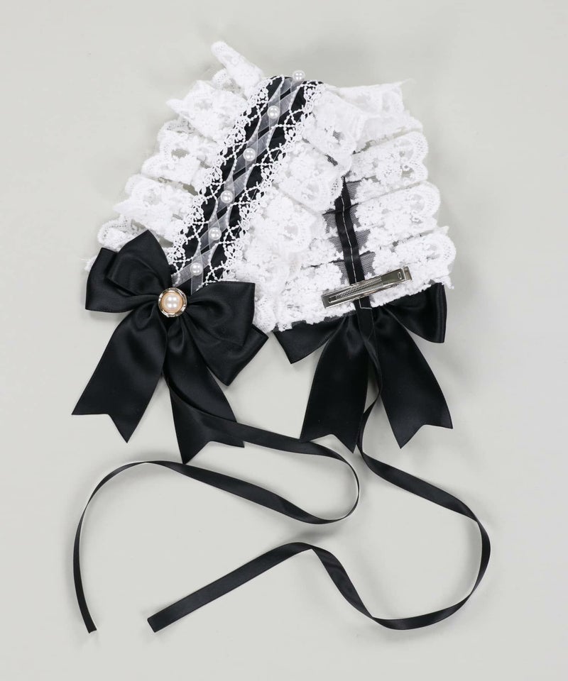 幅広、リボンレースが華やかなヘッドアクセサリー。