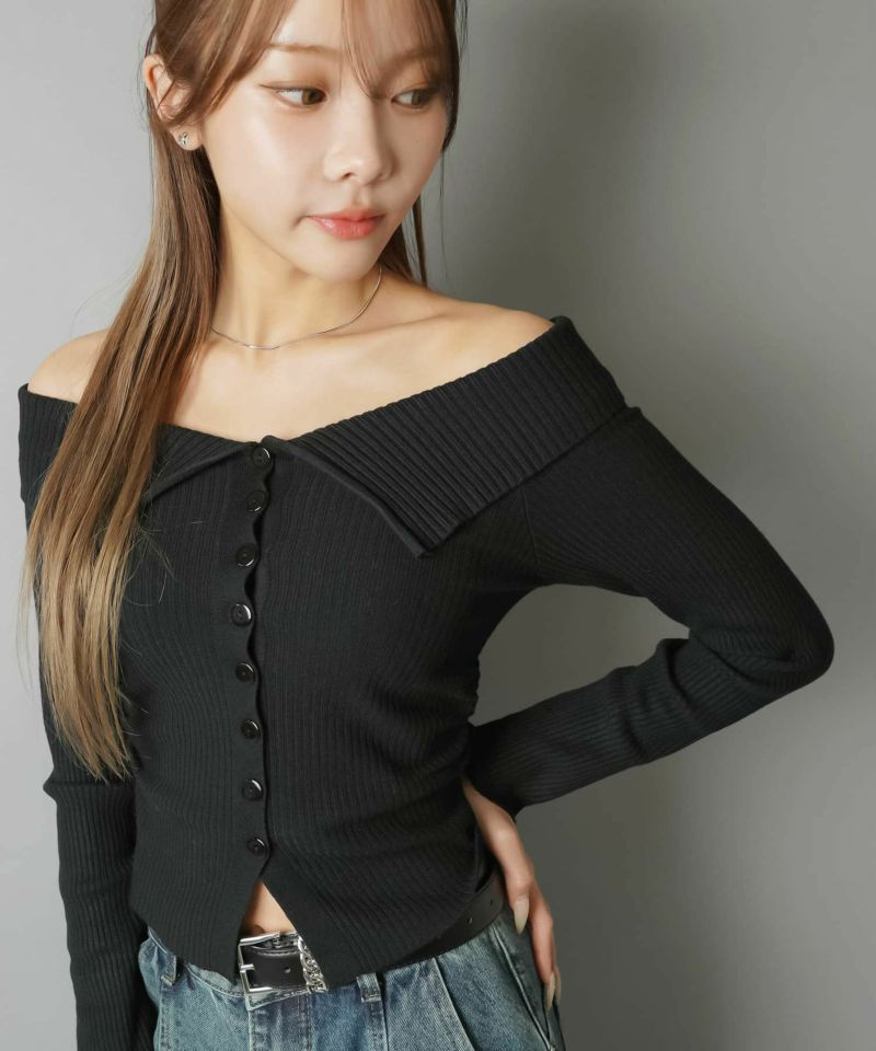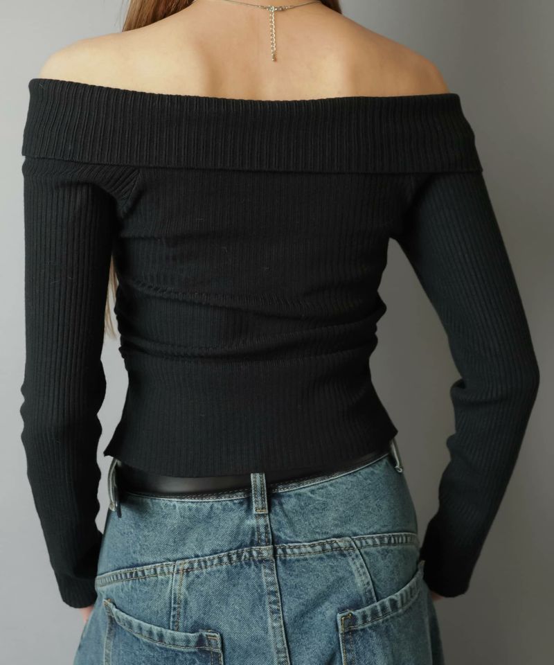 【上品な肌見せが叶う“オフショルデザイン”がポイントの美人見えニット】