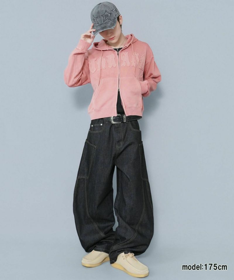 ワークテイストを感じさせる 短丈ダブルジップパーカー。