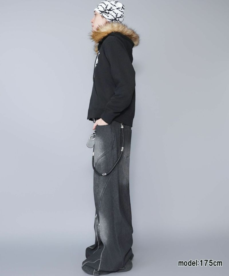 フードには存在感のあるフェイクファーをあしらい、