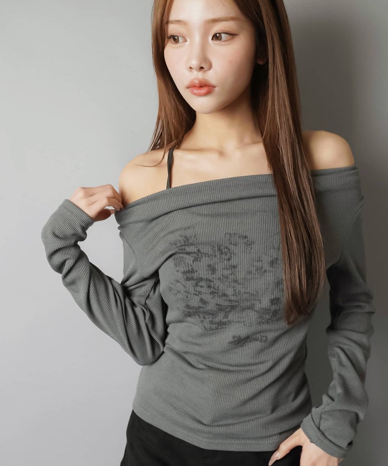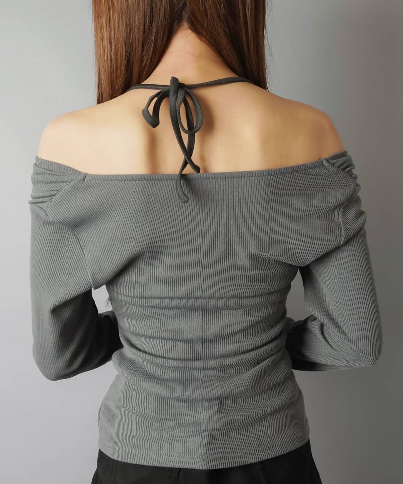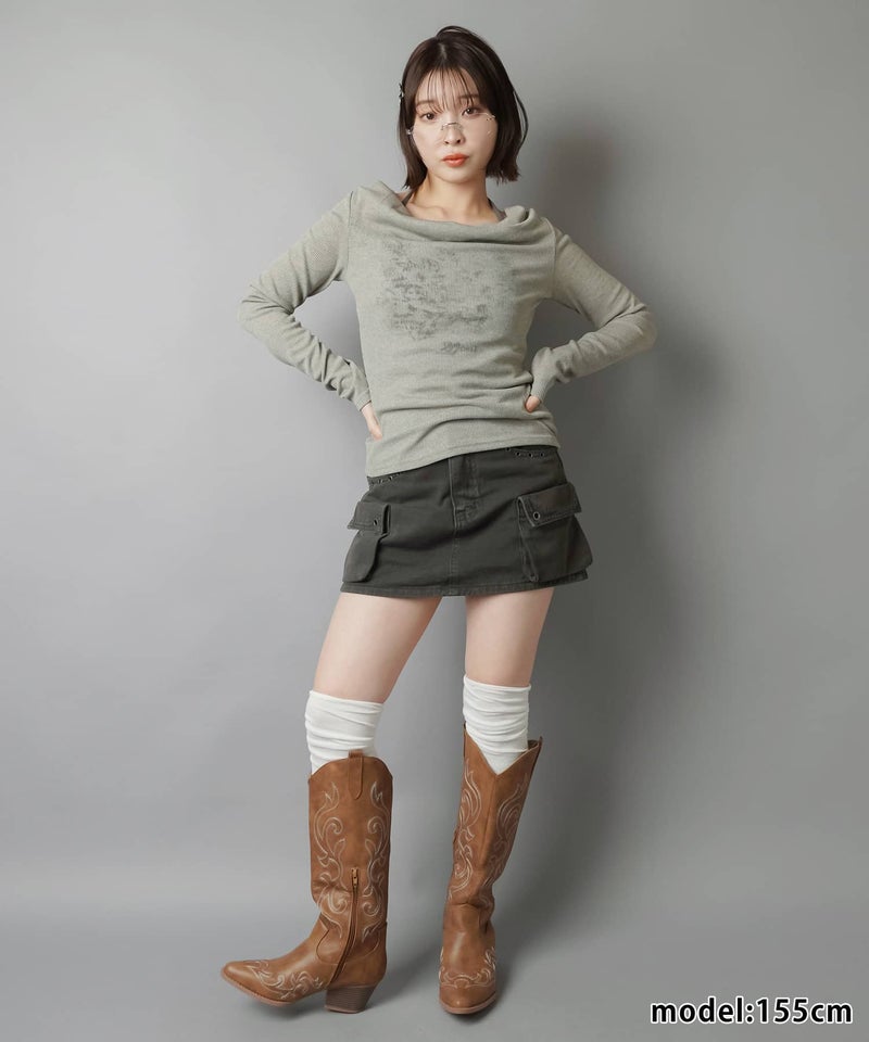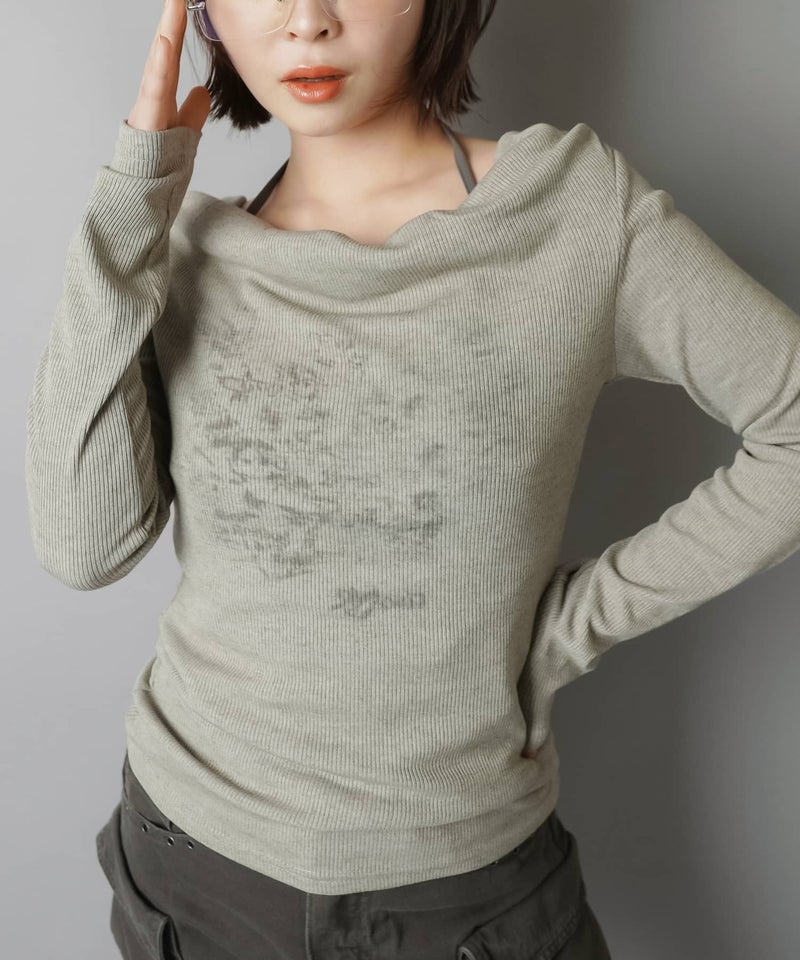 【デコルテがきれい見えするドレープ長袖カットソー】