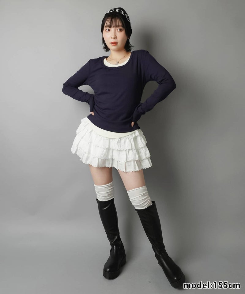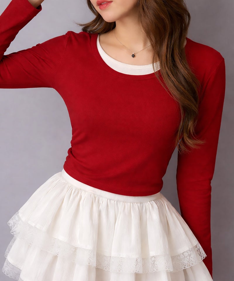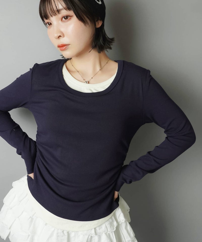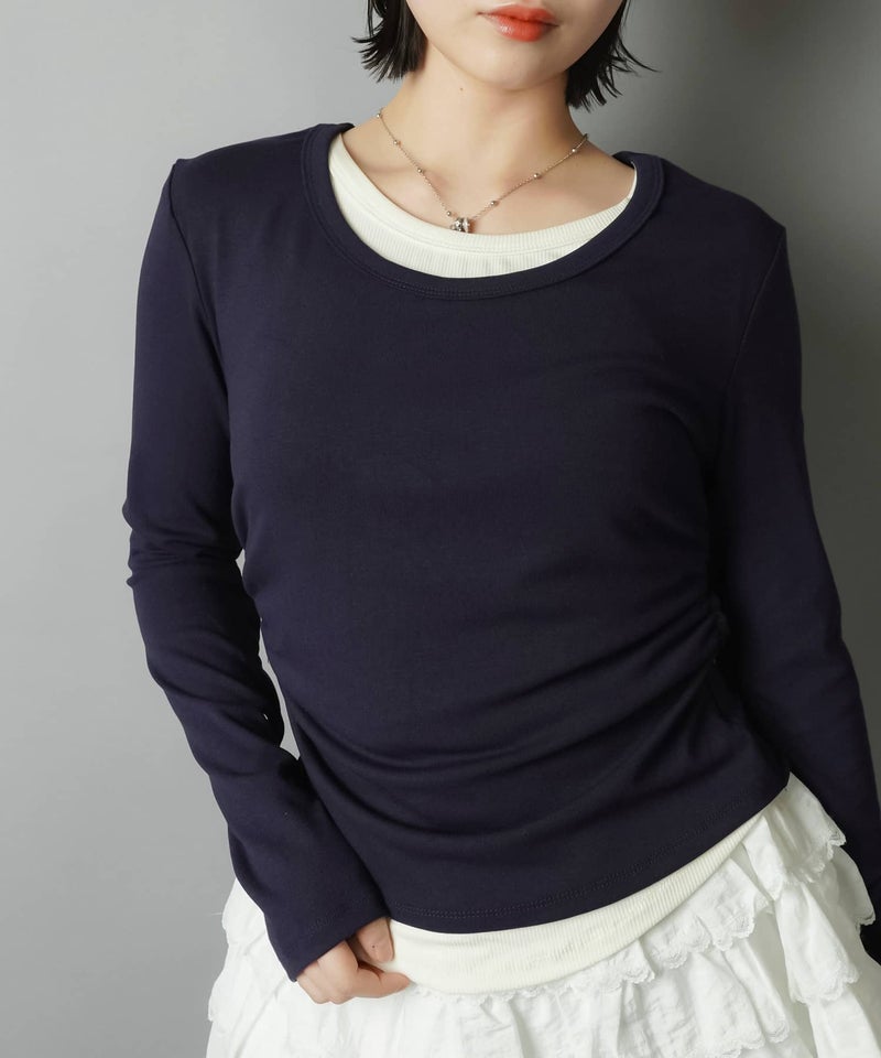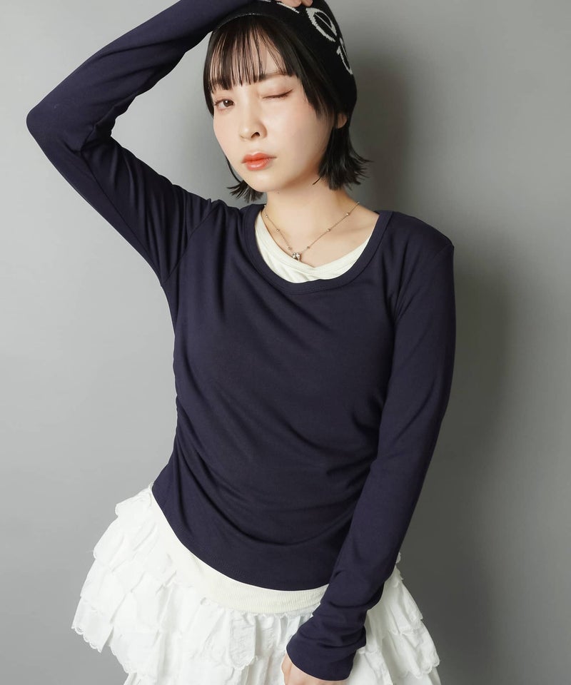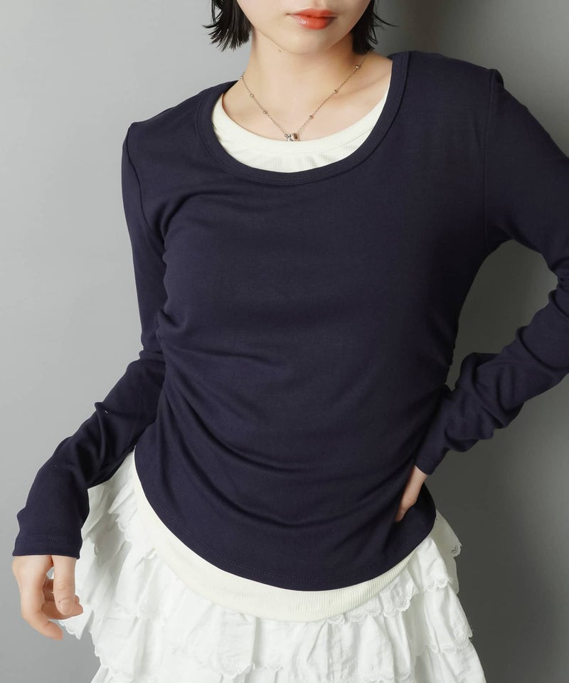 カットソー×インナーを重ねたように見える、人気の“レイヤード風デザイン”トップス。
