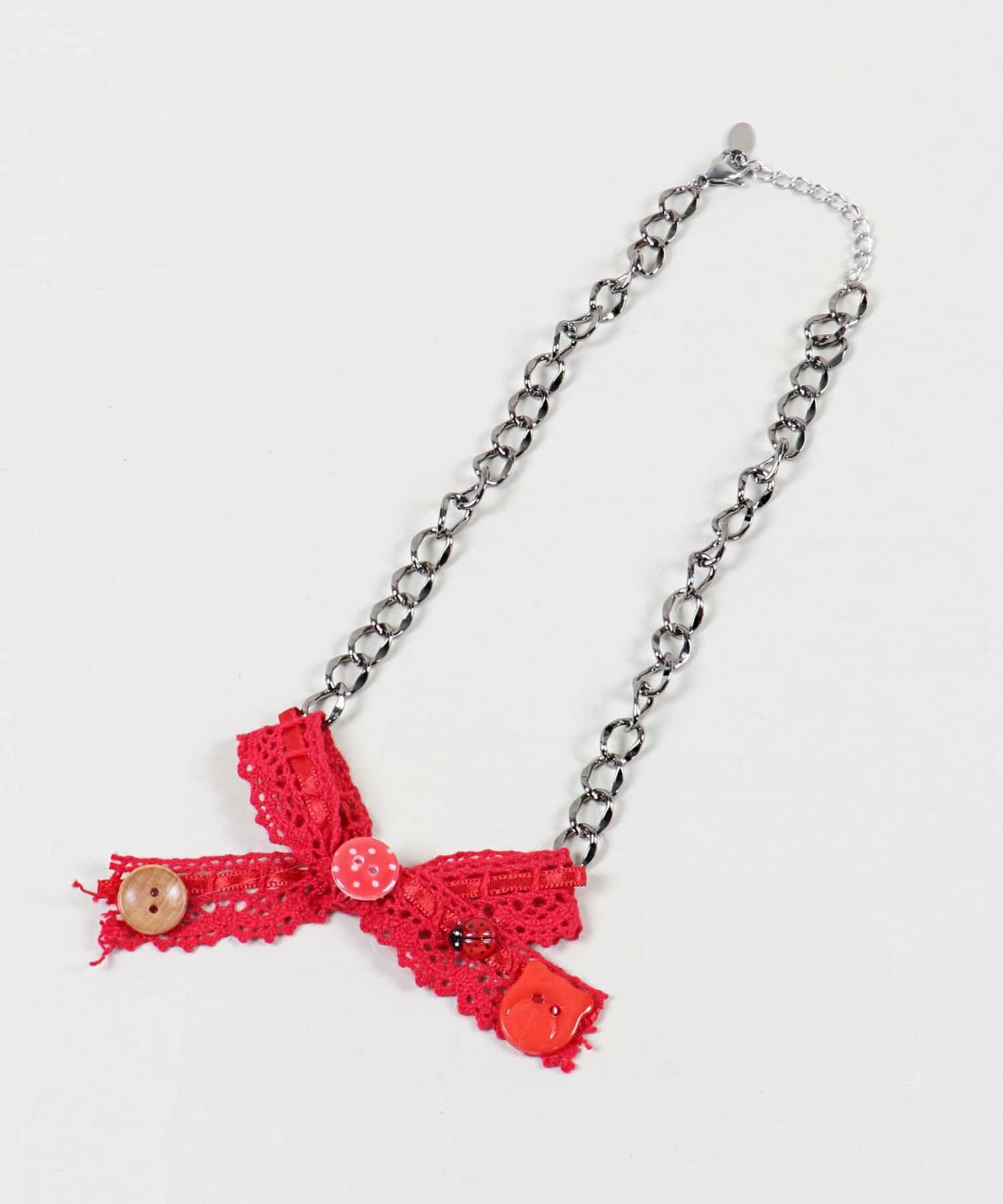 【50%OFF】ボタンネックレス/レースリボン/#NEO森ガール<メール便対応>