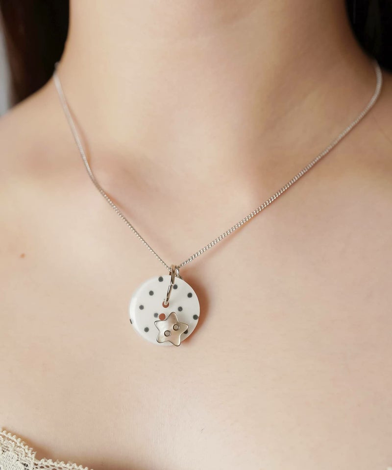 【75%OFF】ボタンネックレス/ドット柄/#NEO森ガール<メール便対応>