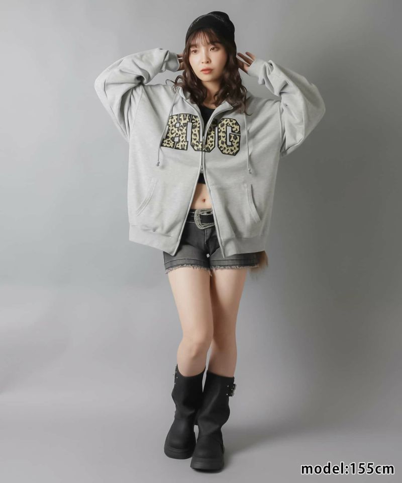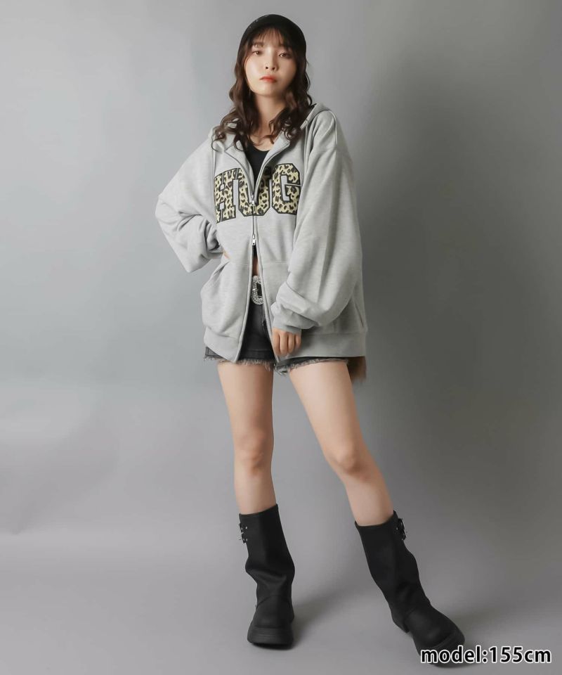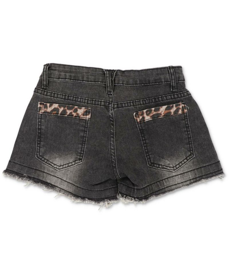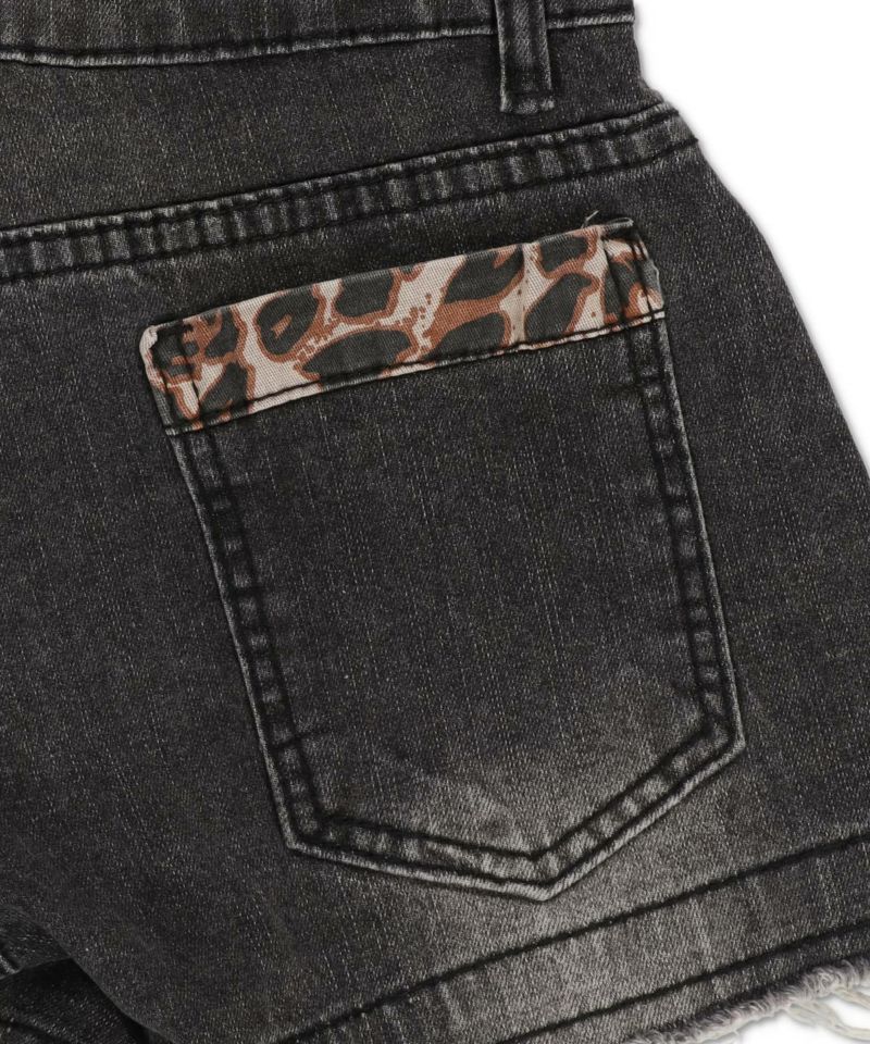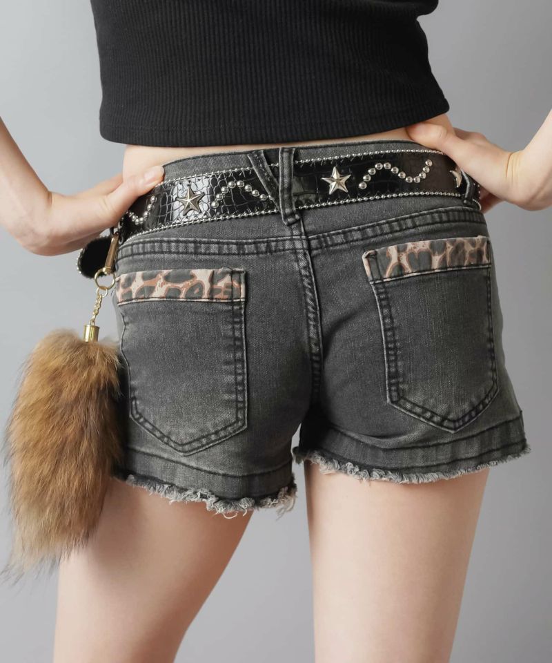 【26%OFF】デニムショートパンツ/ヒョウ柄フリル/レオパード/ロールアップ