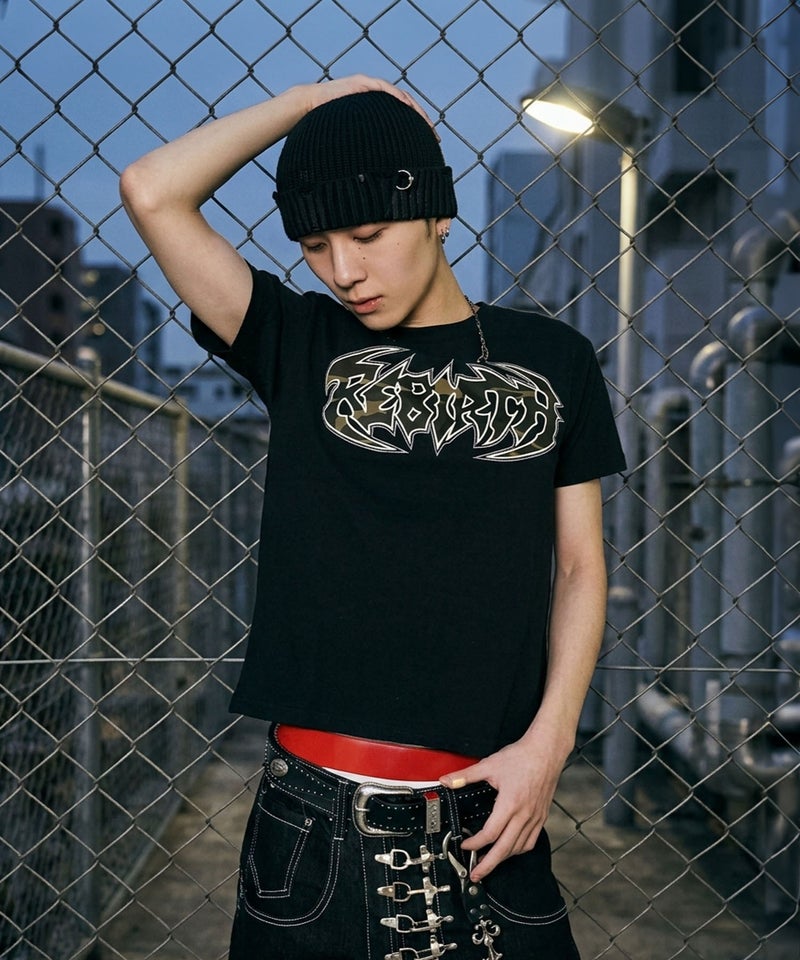 存在感のあるパッチワークロゴが目を引く半袖Tシャツ。
