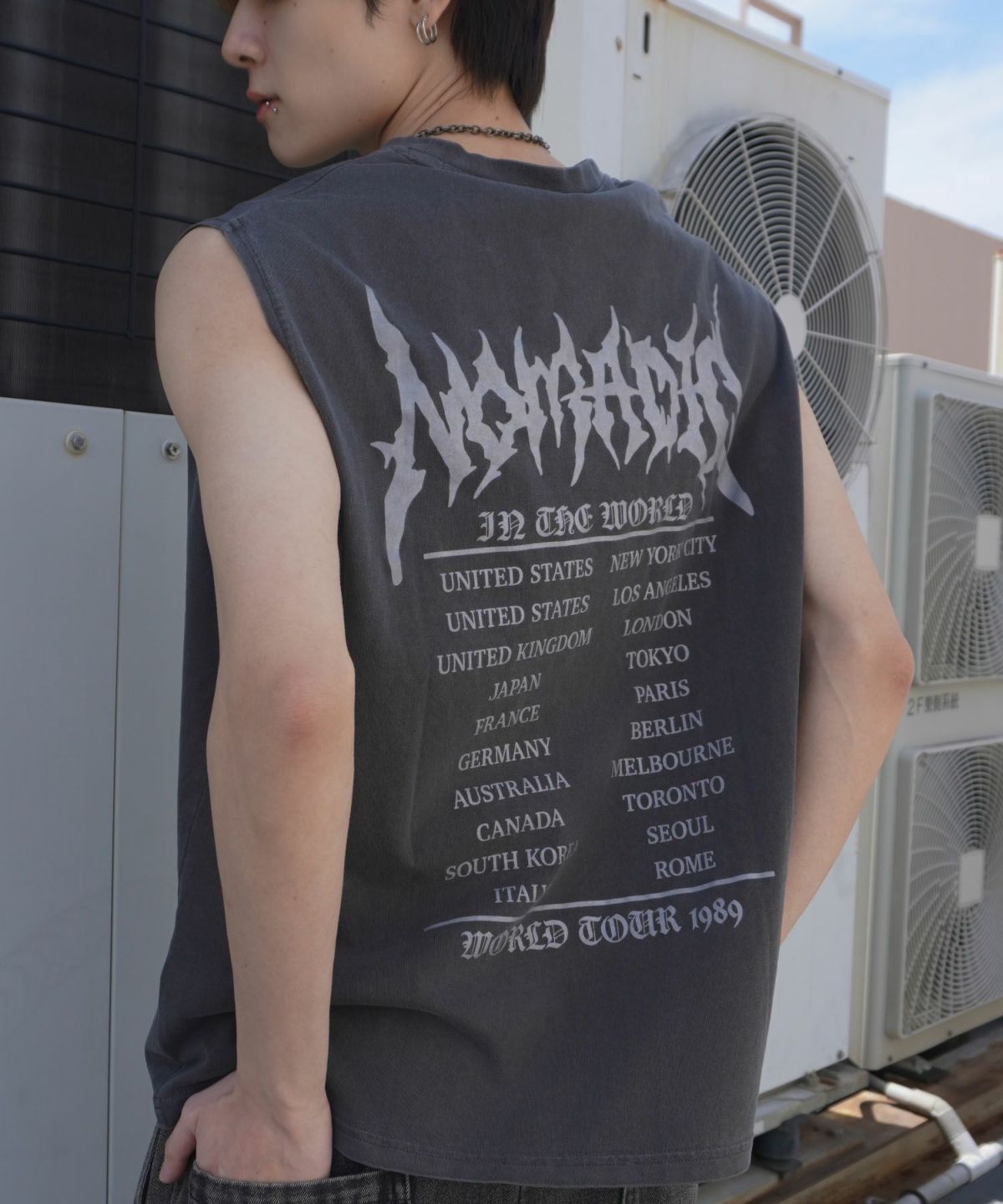 SOLD OUT 他の画像を見る 54%オフ🔥 【80%OFF】ピグメント加工バックプリントノースリーブTシャツ/バンT風/古着風/短丈 ¥ 2,189 → ¥ 550 税込 SALE UNISEX カートに入れる お気に入りに追加
