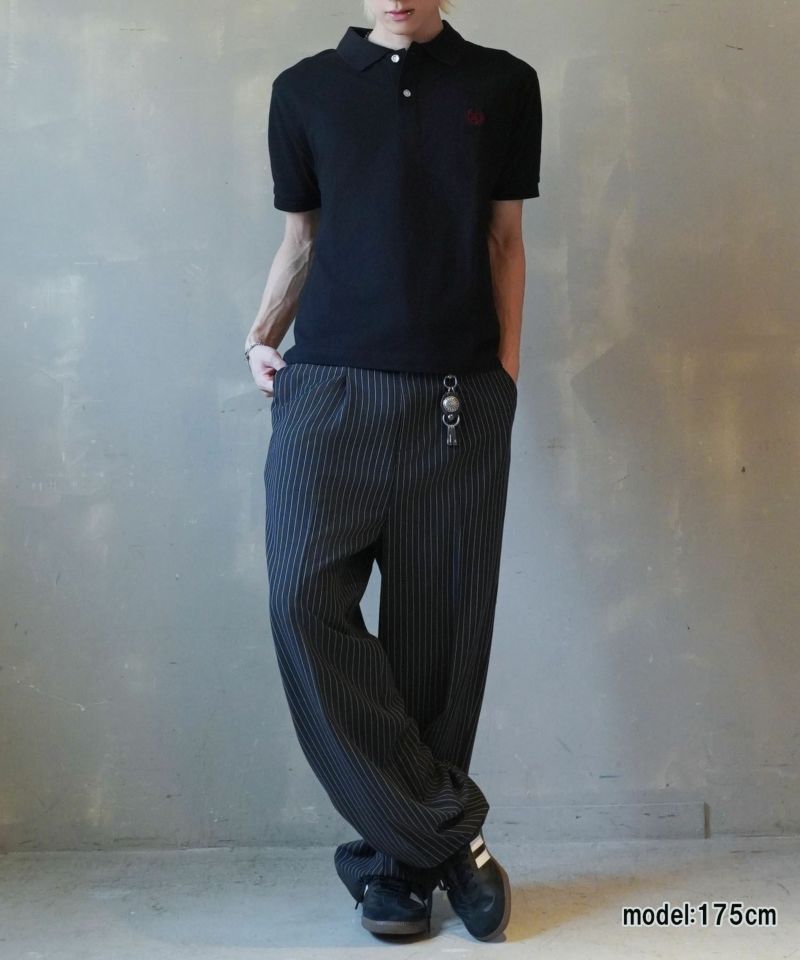 胸元のエンブレム風ワンポイント刺繍が映える、
