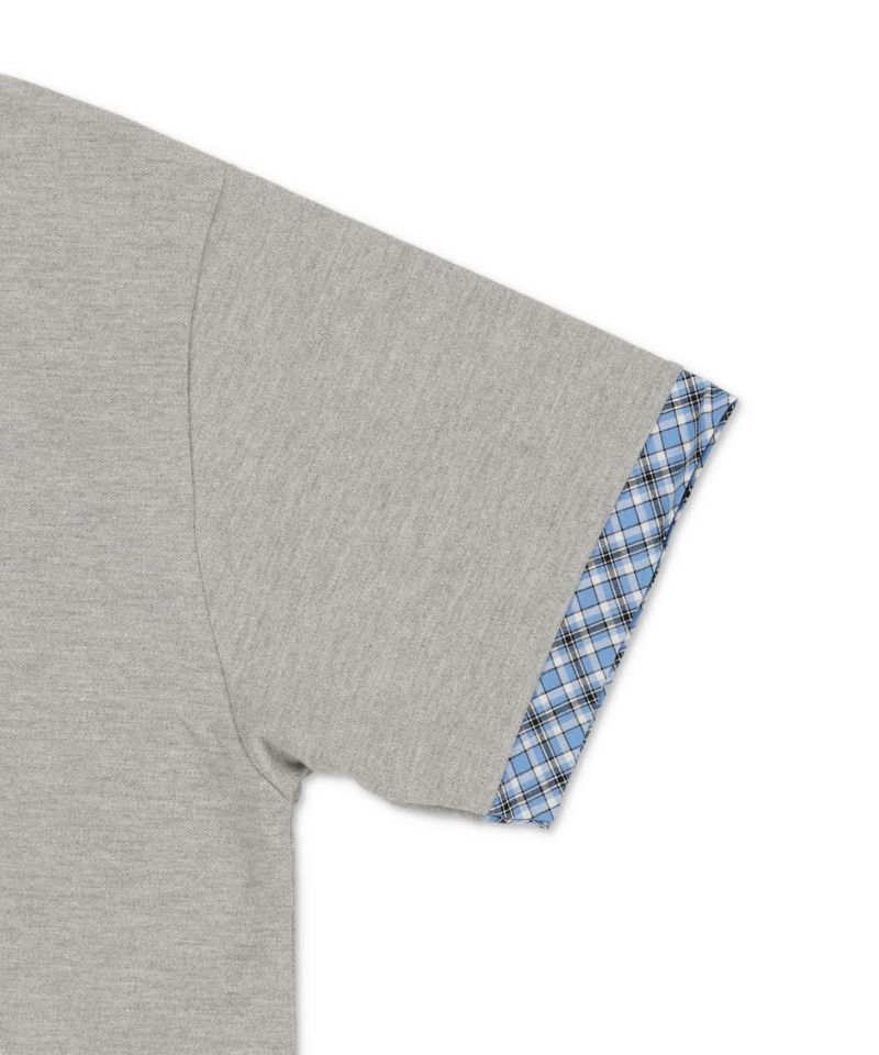 襟と袖口にチェック柄の切り替えを施した、