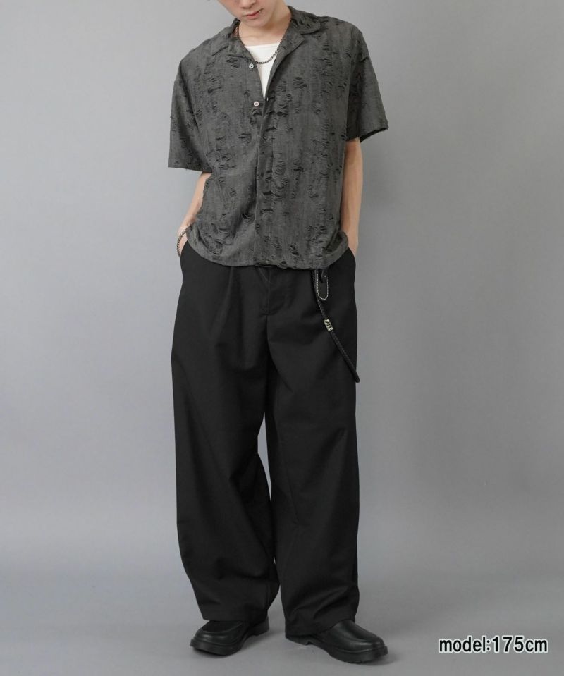オープンカラー(開襟)×ワイドシルエットで、