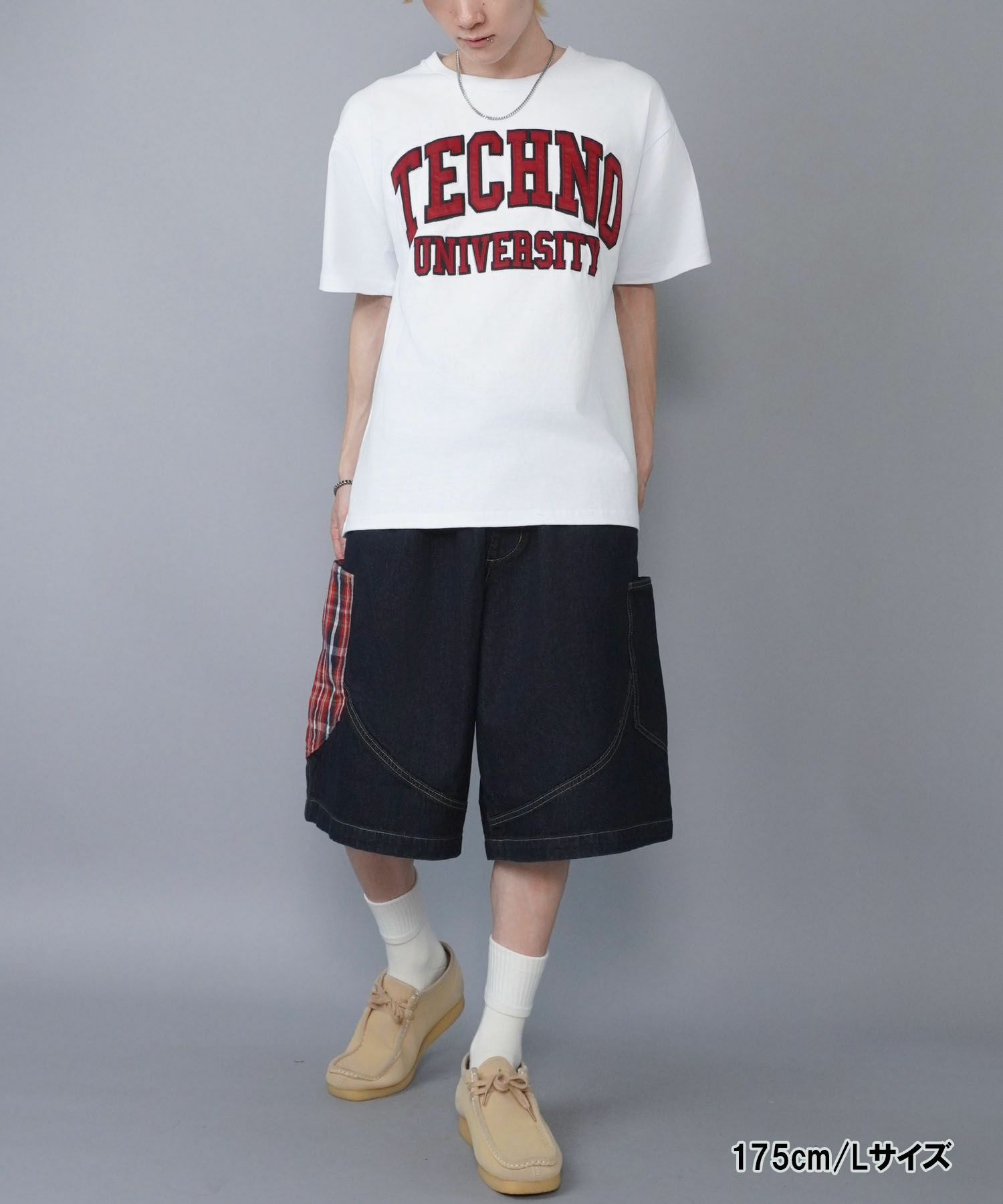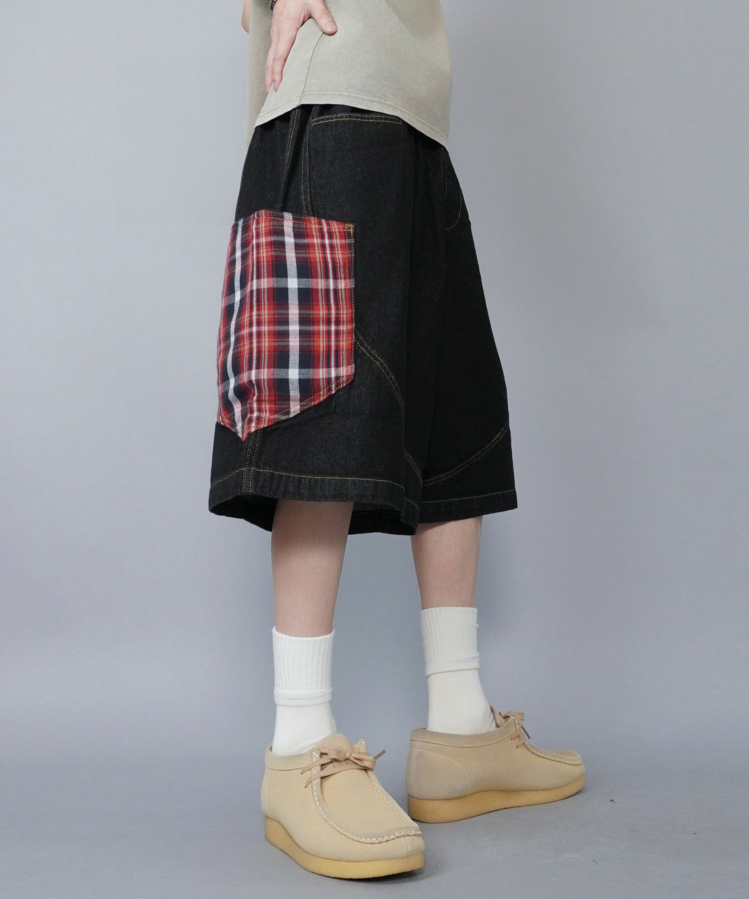 チェック切り替えが目を引くデニムハーフパンツが新登場。