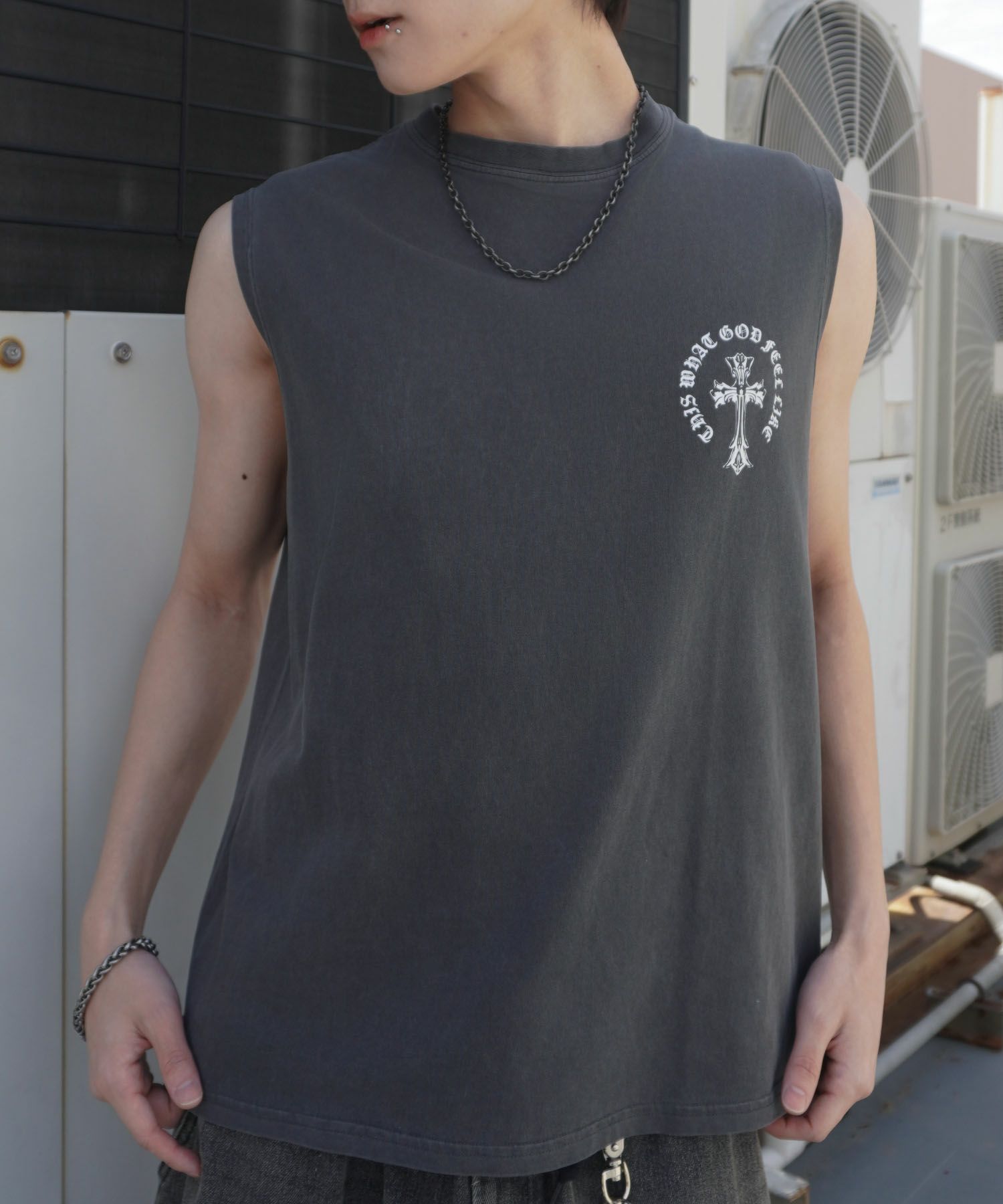 SOLD OUT 他の画像を見る 54%オフ🔥 【80%OFF】ピグメント加工バックプリントノースリーブTシャツ/バンT風/古着風/短丈 ¥ 2,189 → ¥ 550 税込 SALE UNISEX カートに入れる お気に入りに追加