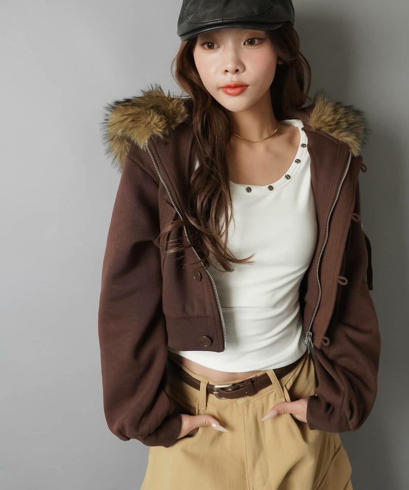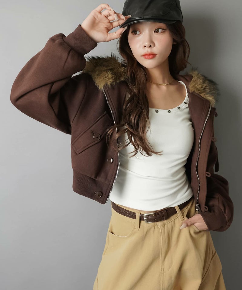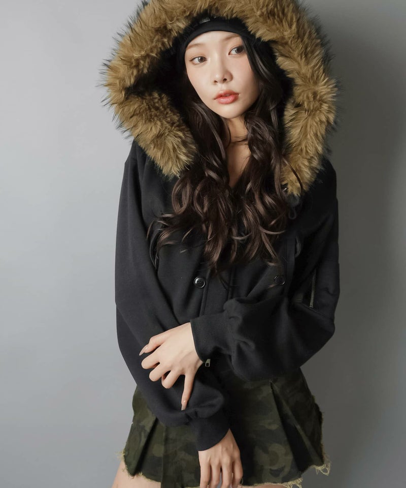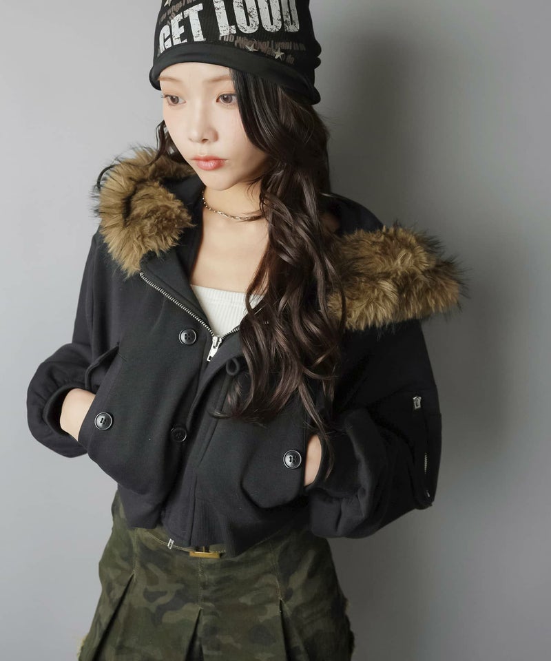 【冬のストリートムード全開!裏起毛であったか♡N-2B風ショートパーカー】