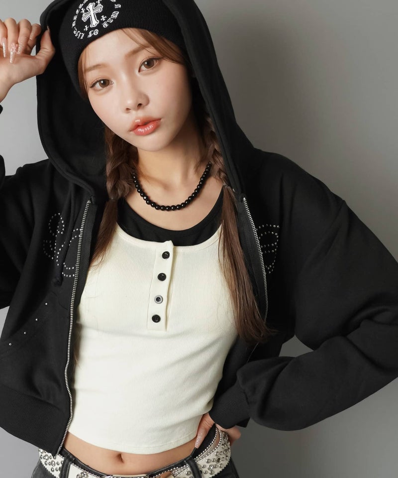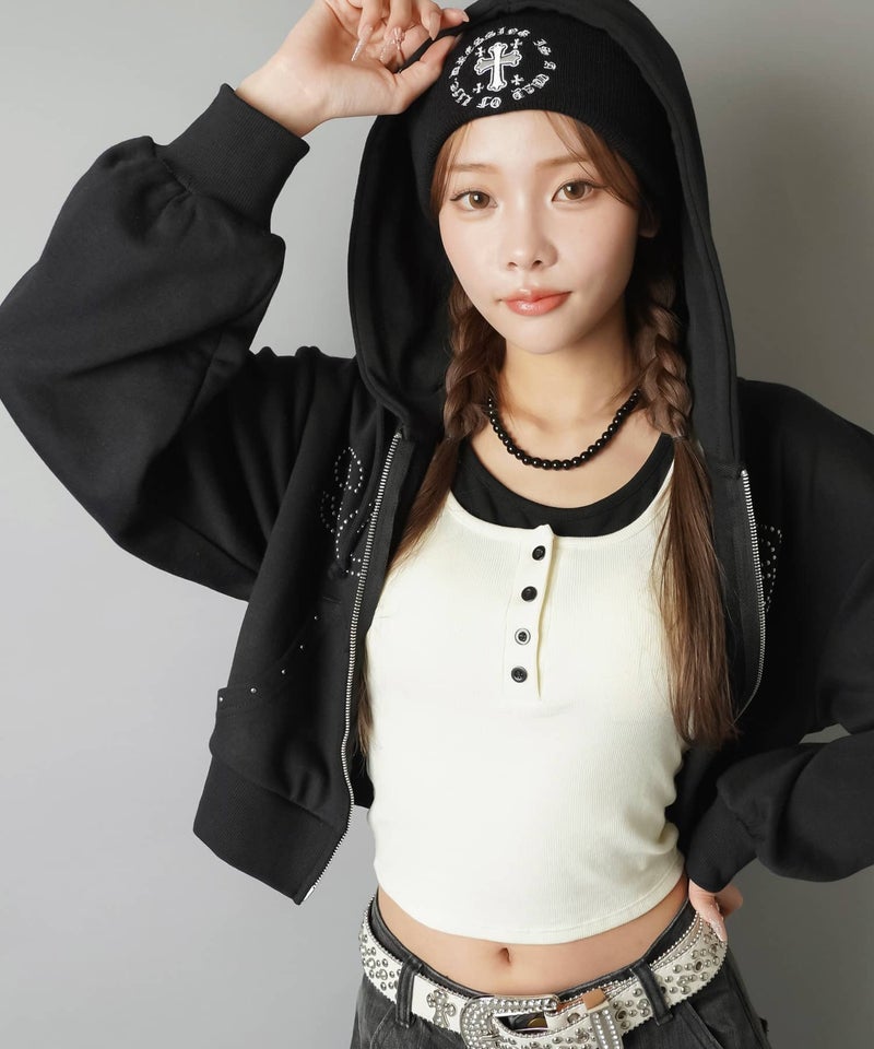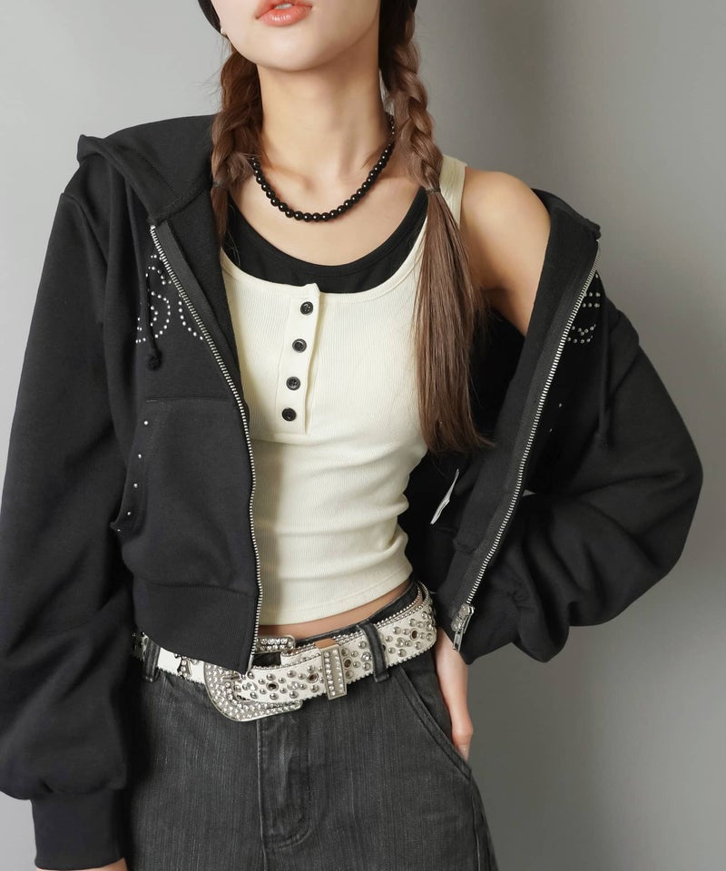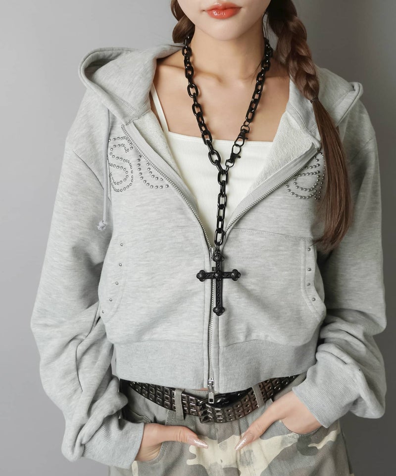 【スタッズが光る☆羽織るだけで盛れる最旬ショートパーカー】