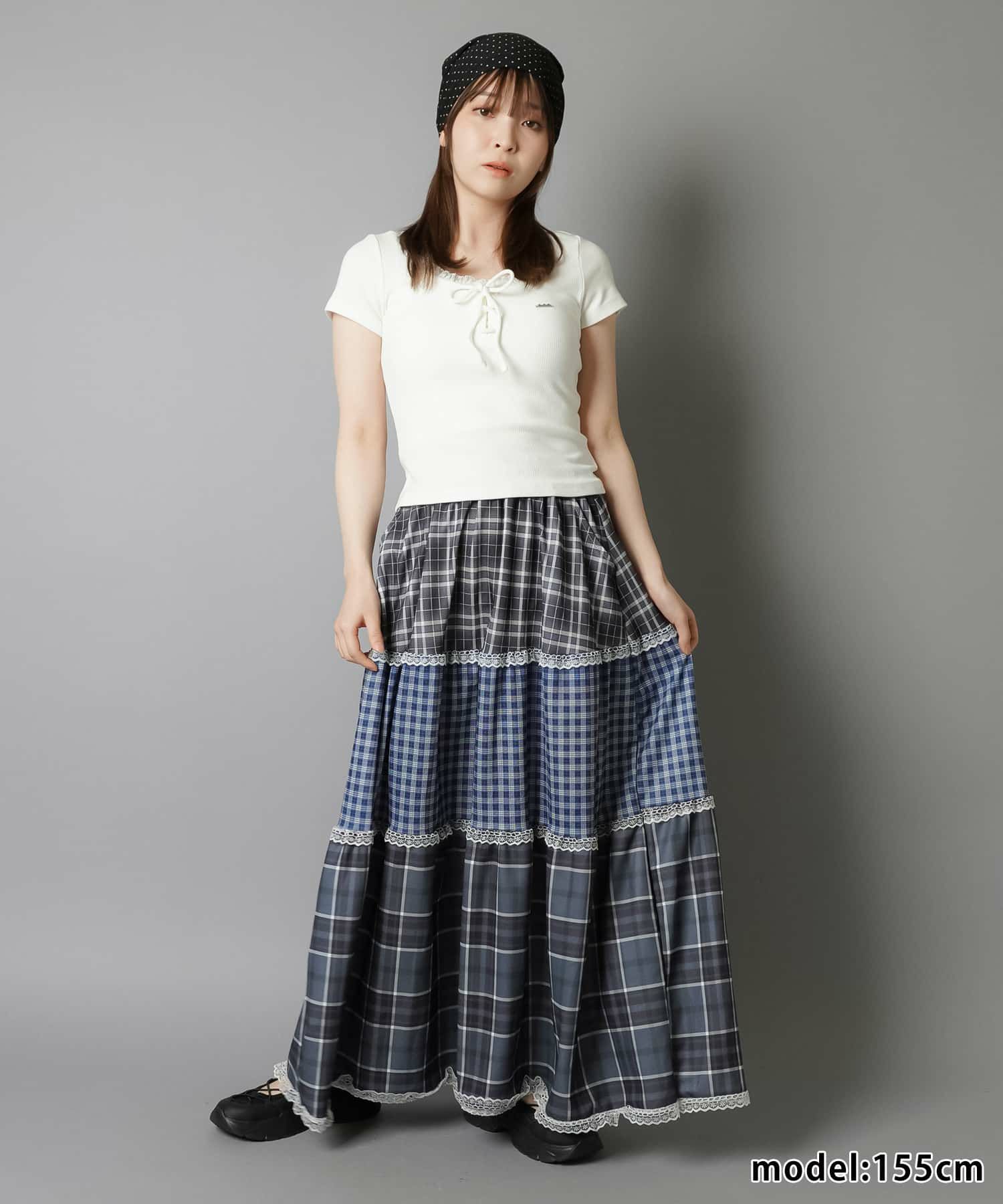 【レトロな雰囲気が可愛い!ツギハギチェックロングスカート】