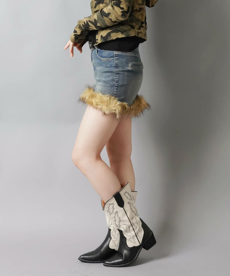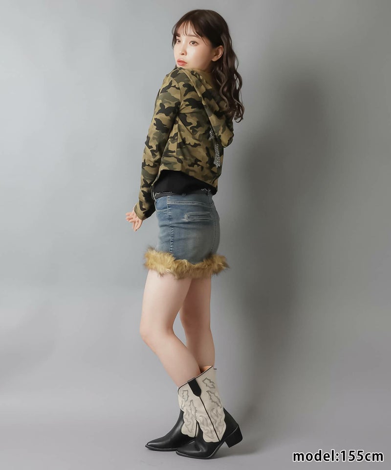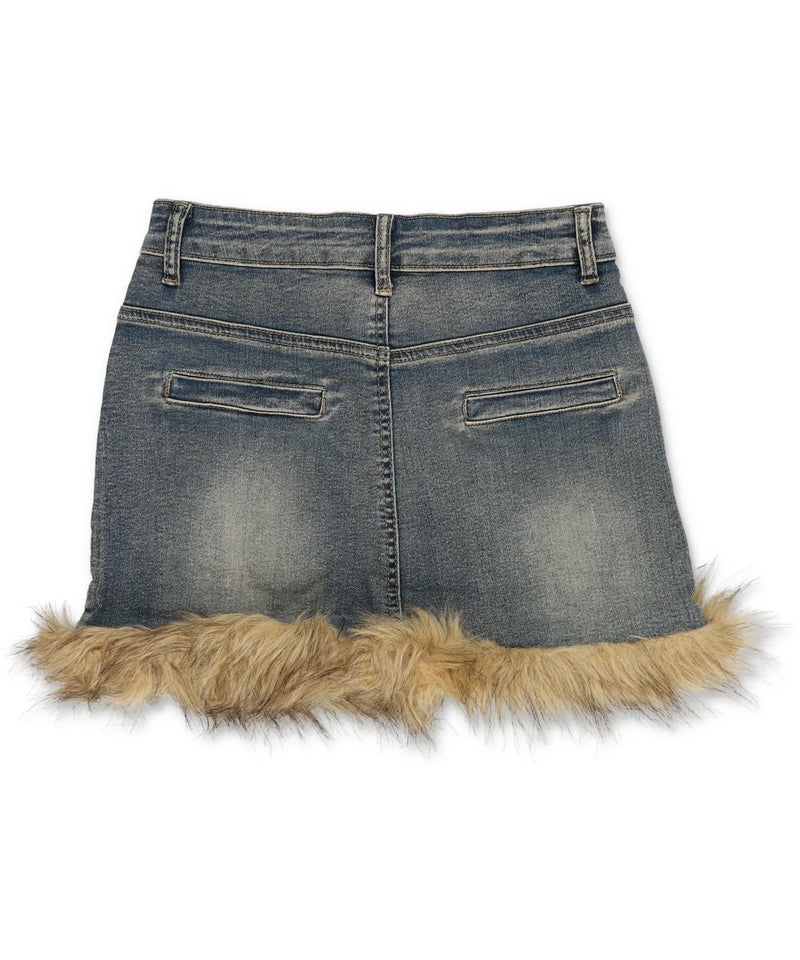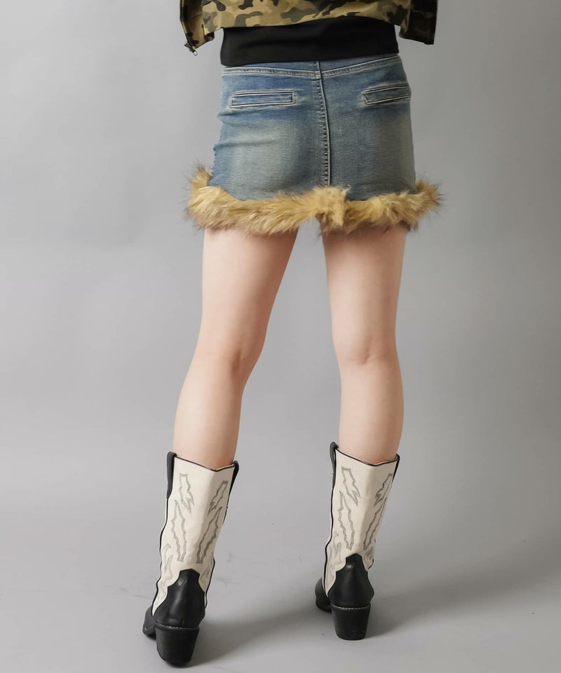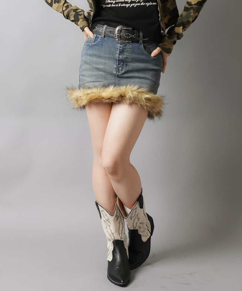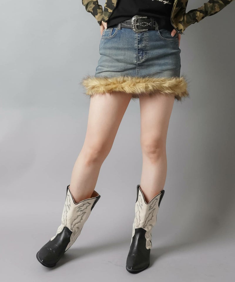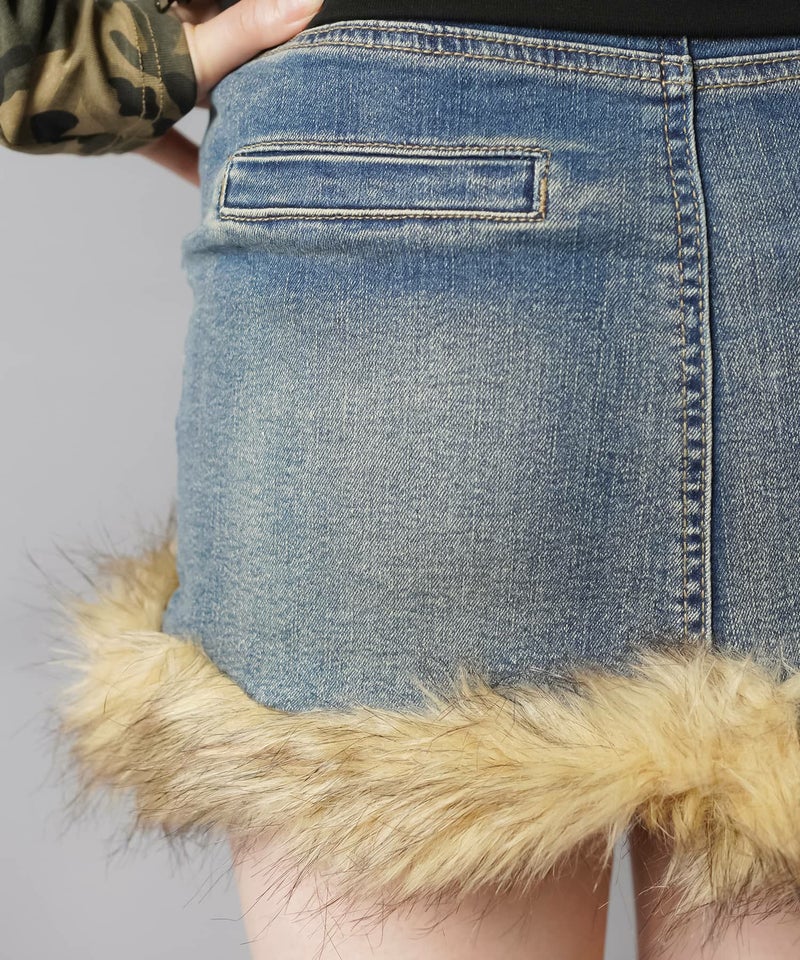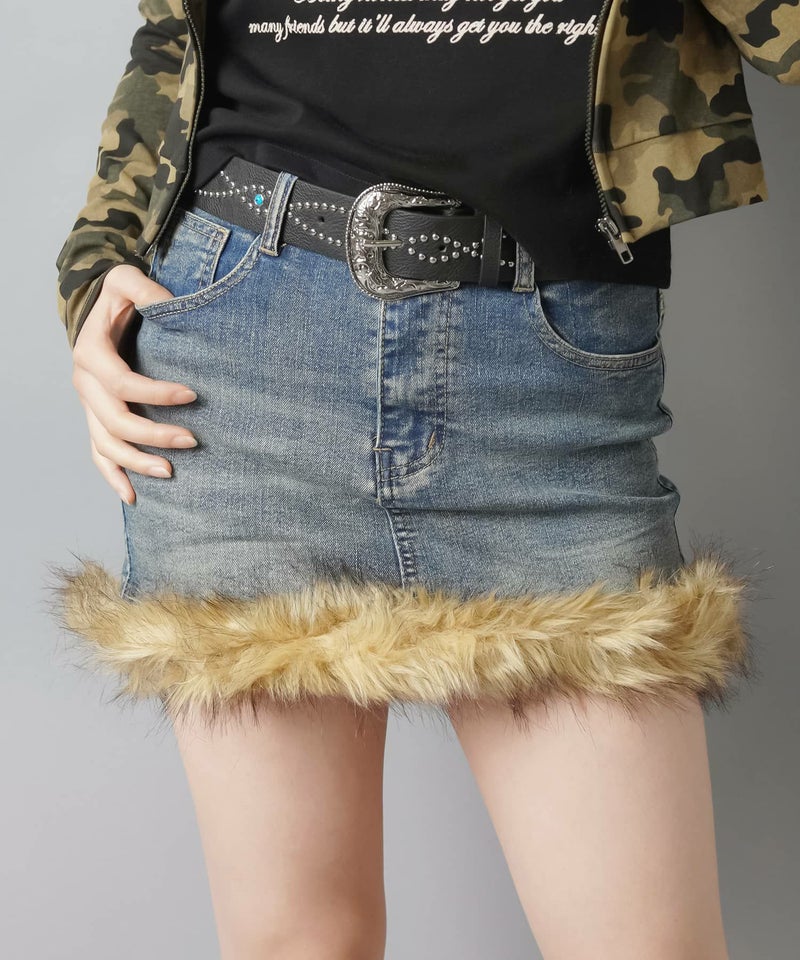 【80%OFF】デニムタイトミニスカート/裾フェイクファー