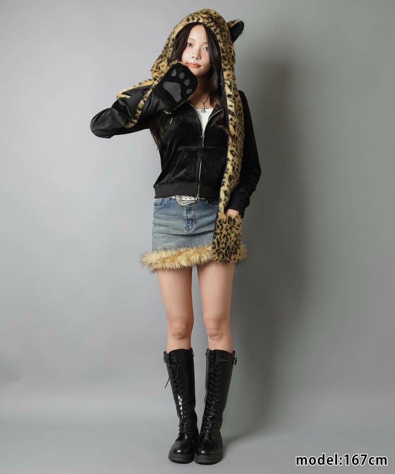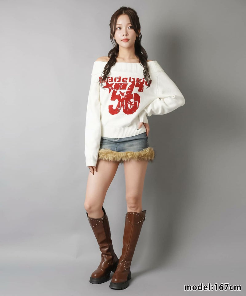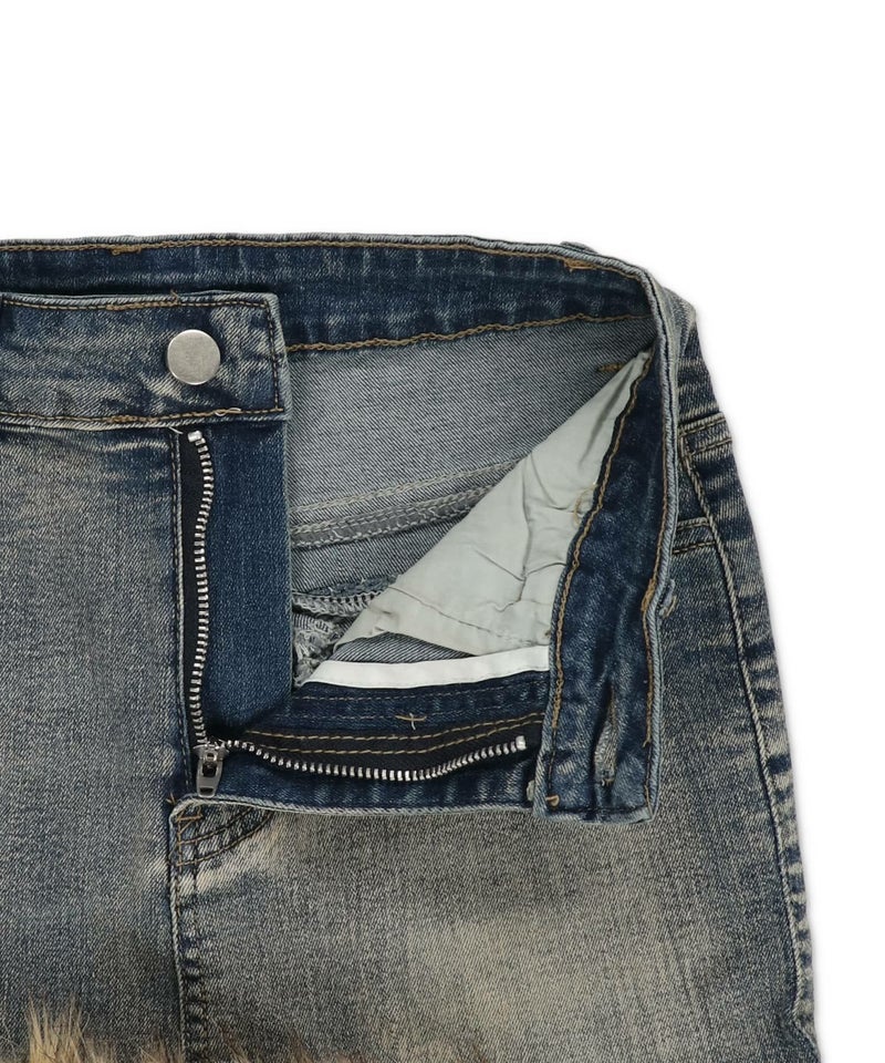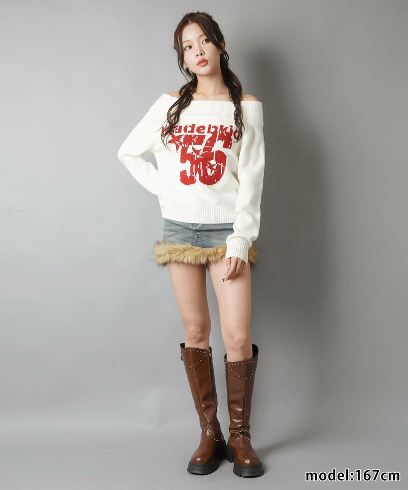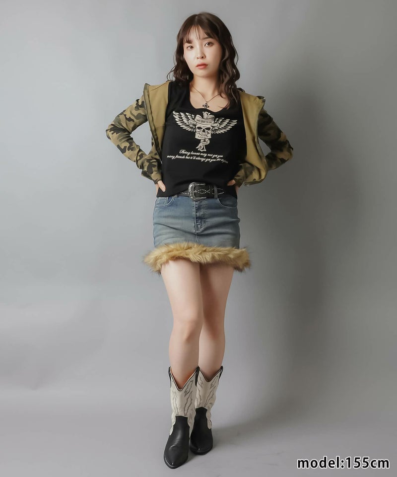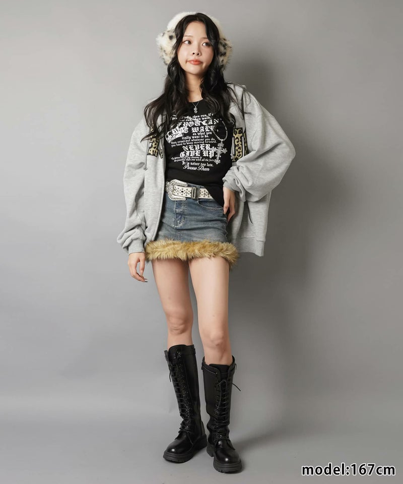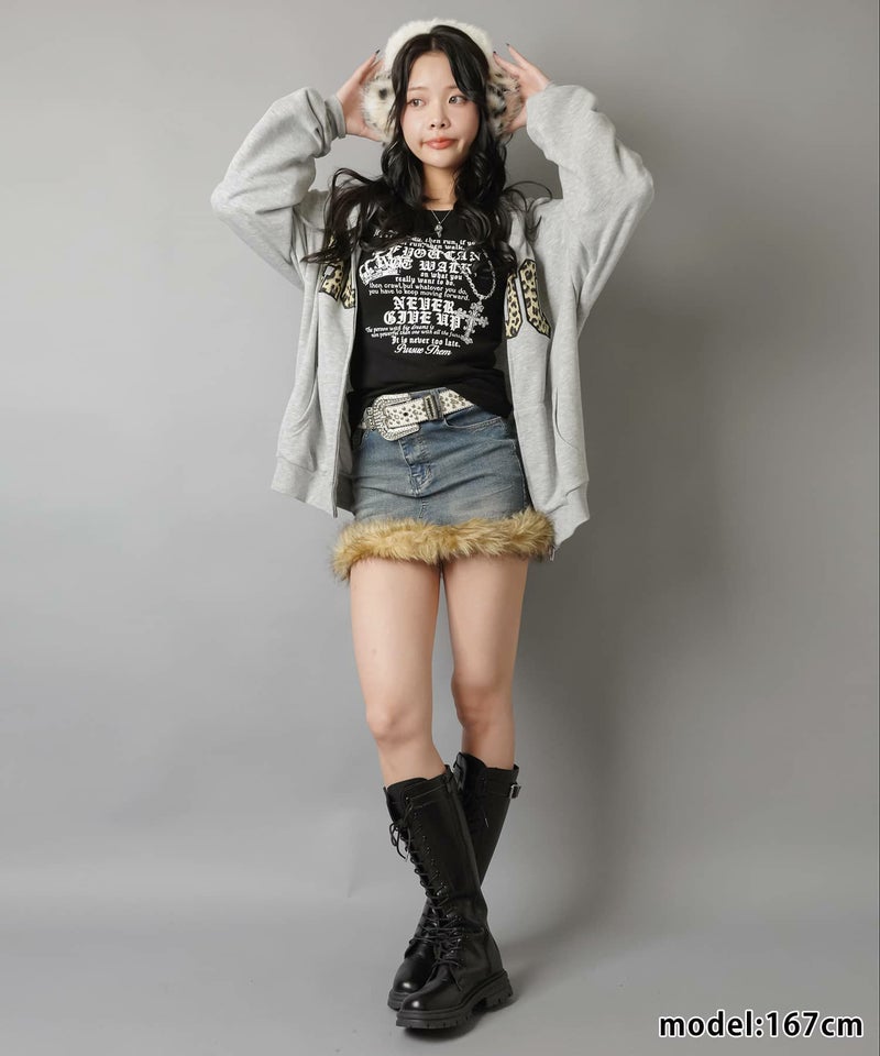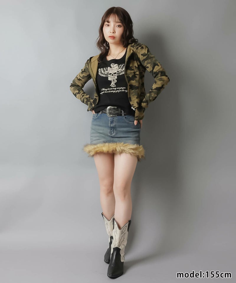 【80%OFF】デニムタイトミニスカート/裾フェイクファー