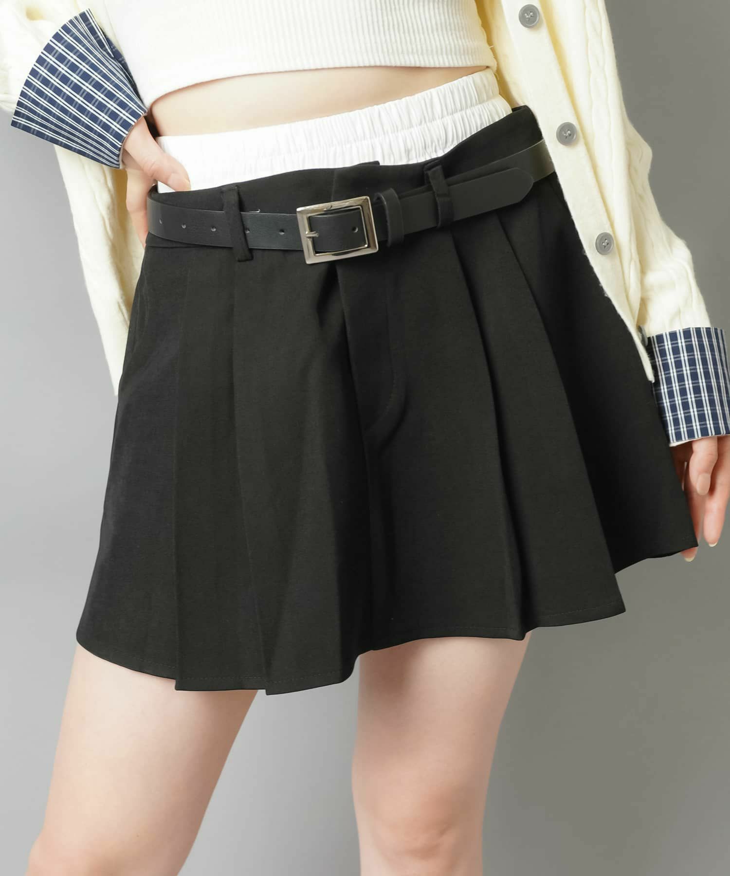 1:一枚でレイヤード風が出来るミニスカート