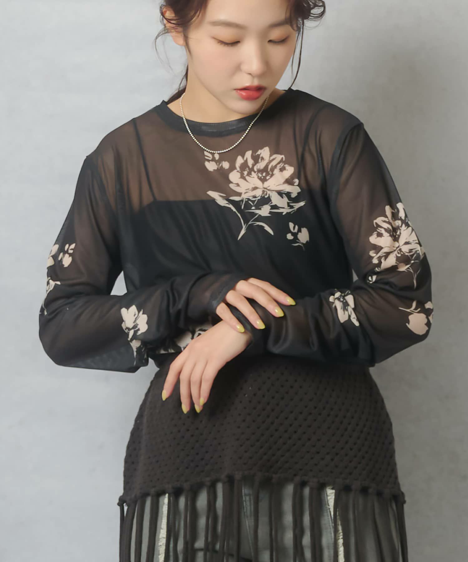 【繊細なデザインとトレンド感を兼ね備えたシアートップス】