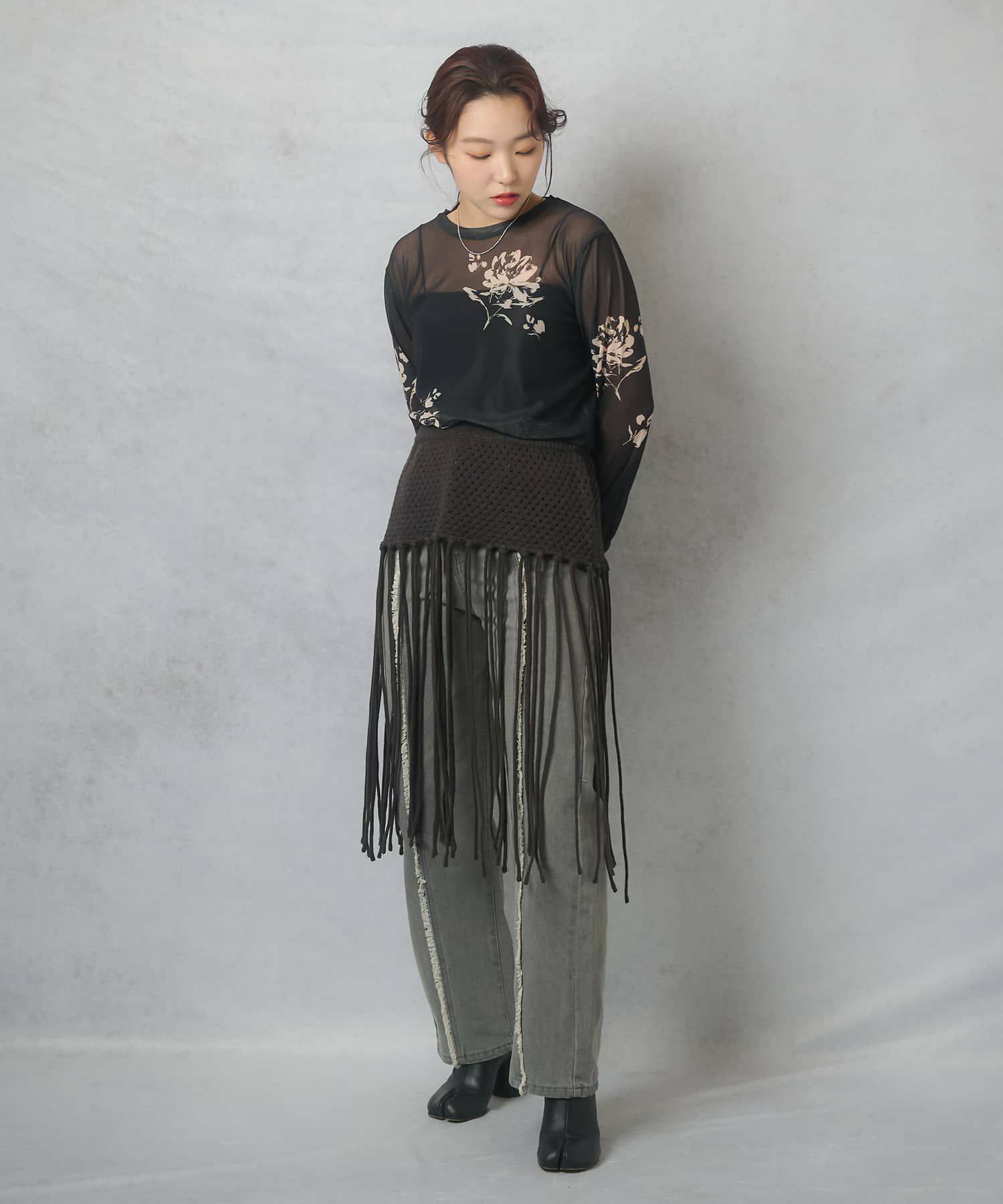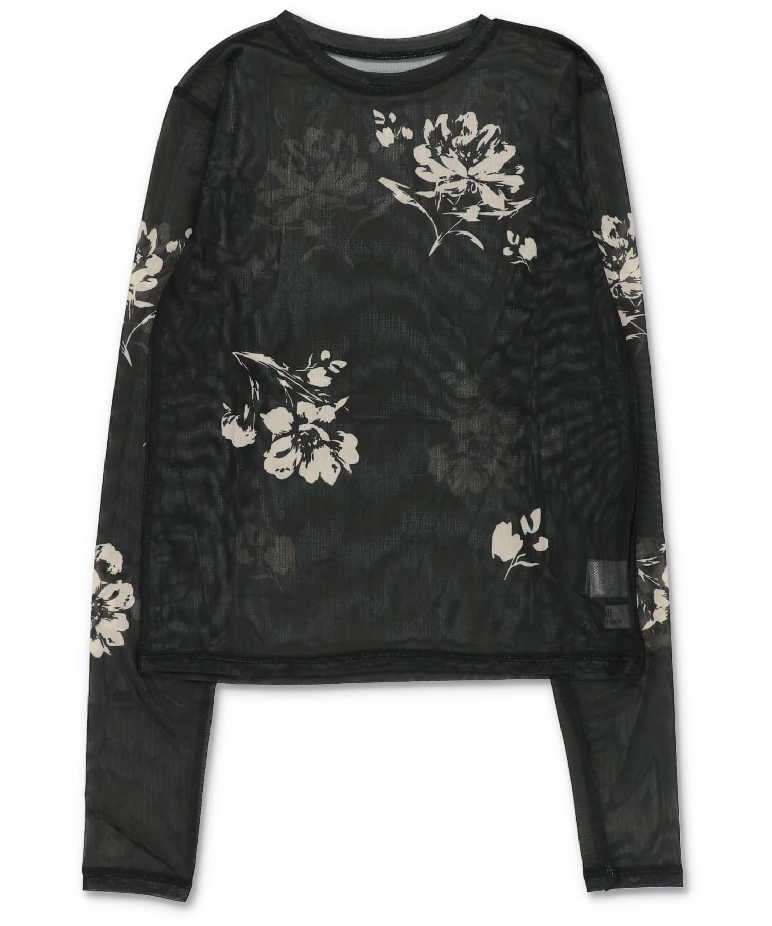 透け感のある軽やかな素材を使用し、レイヤードスタイルに最適。