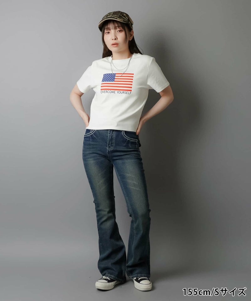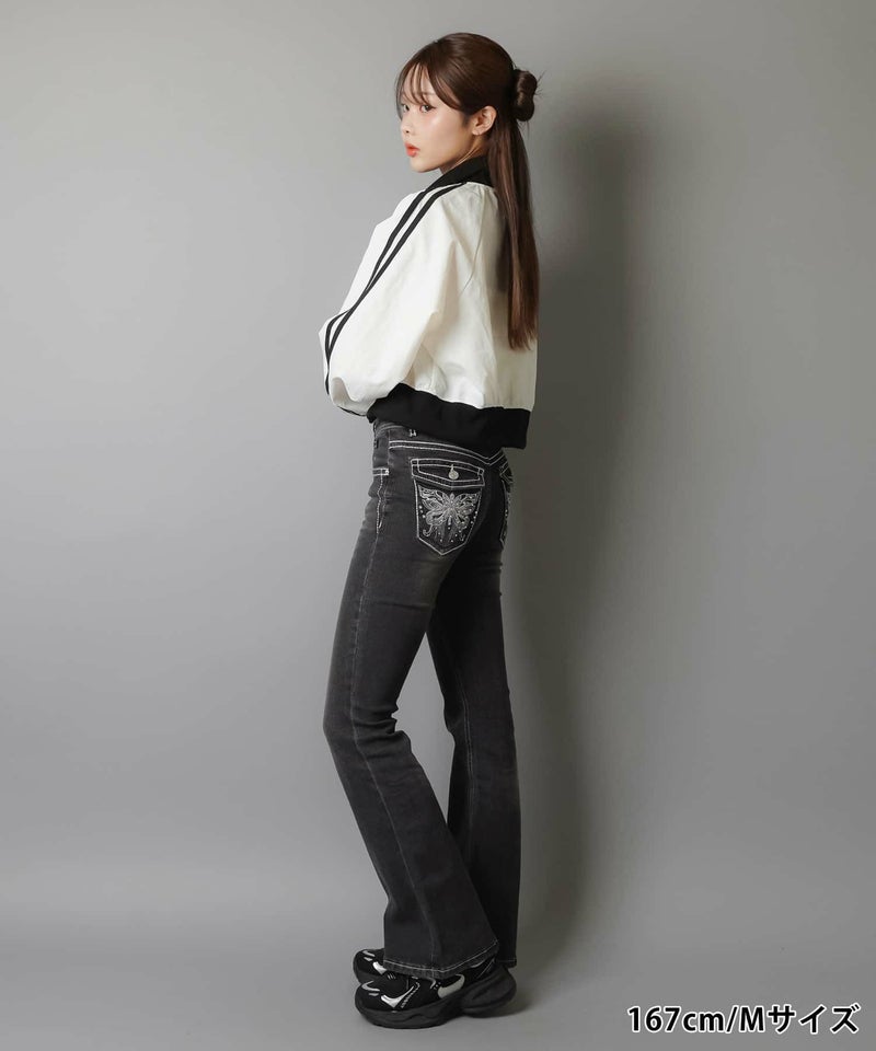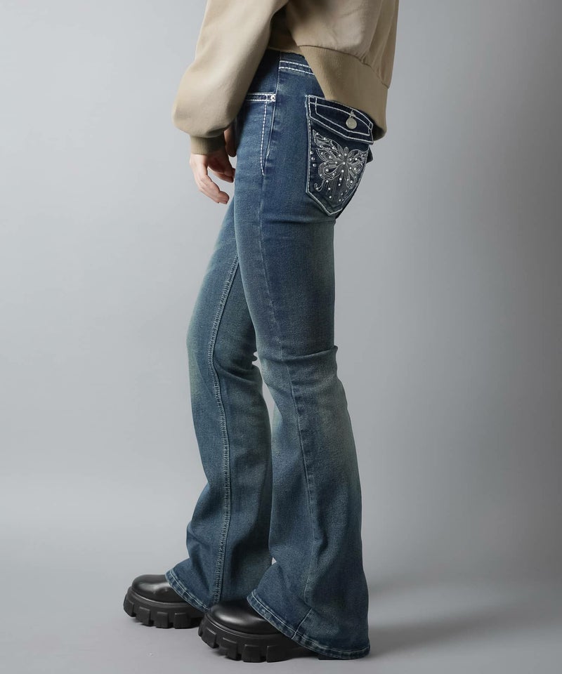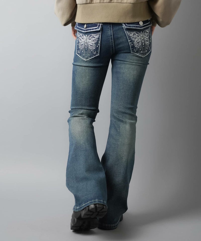 【ギャルがリバイバル⁉ギャルっぽ☆蝶々ラインストーンデニムパンツ】