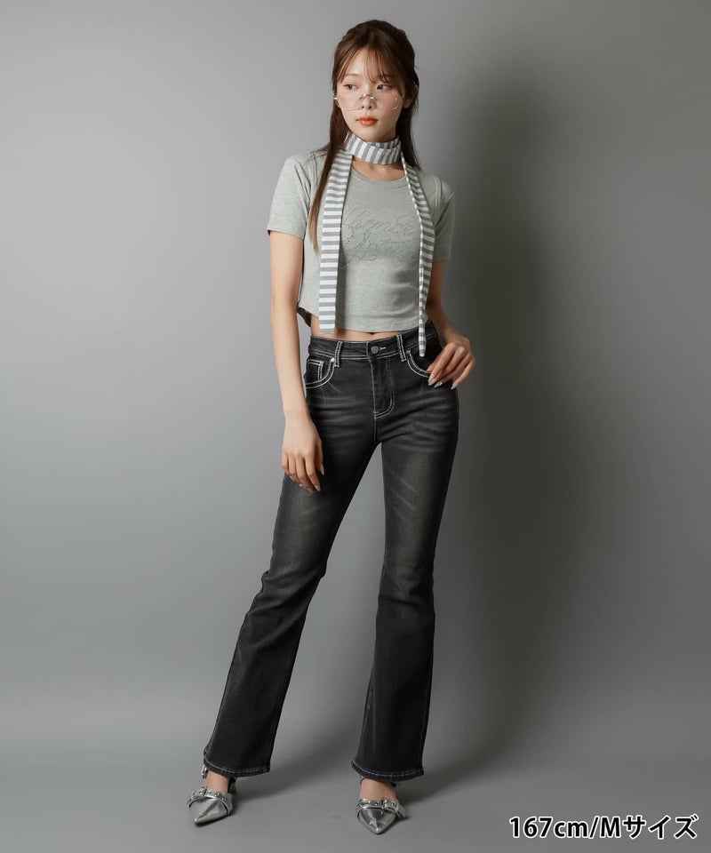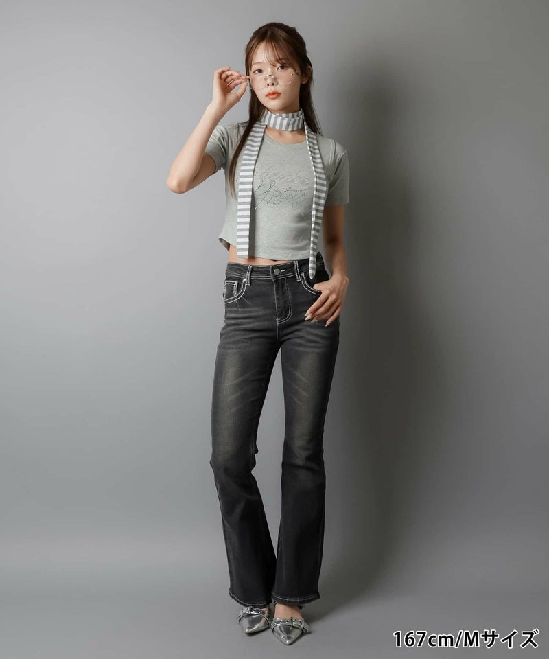 2:後ろポケット部分のラインストーンが高見えするアイテム