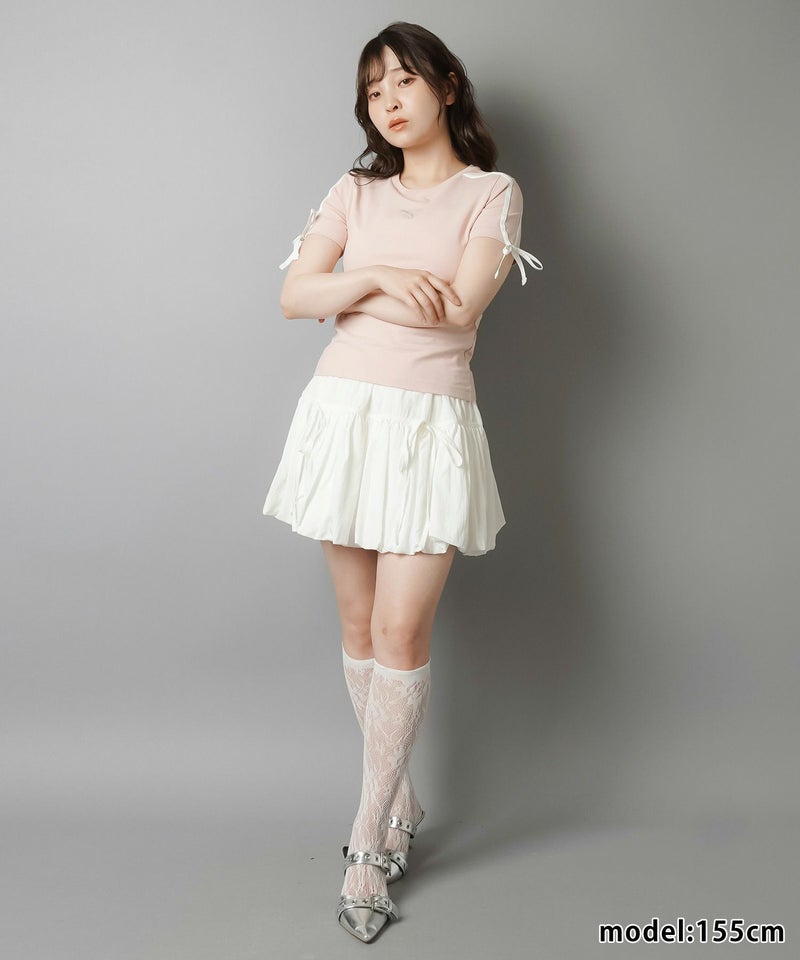 【84%OFF】バルーンミニスカート/リボン/インナーパンツ付き