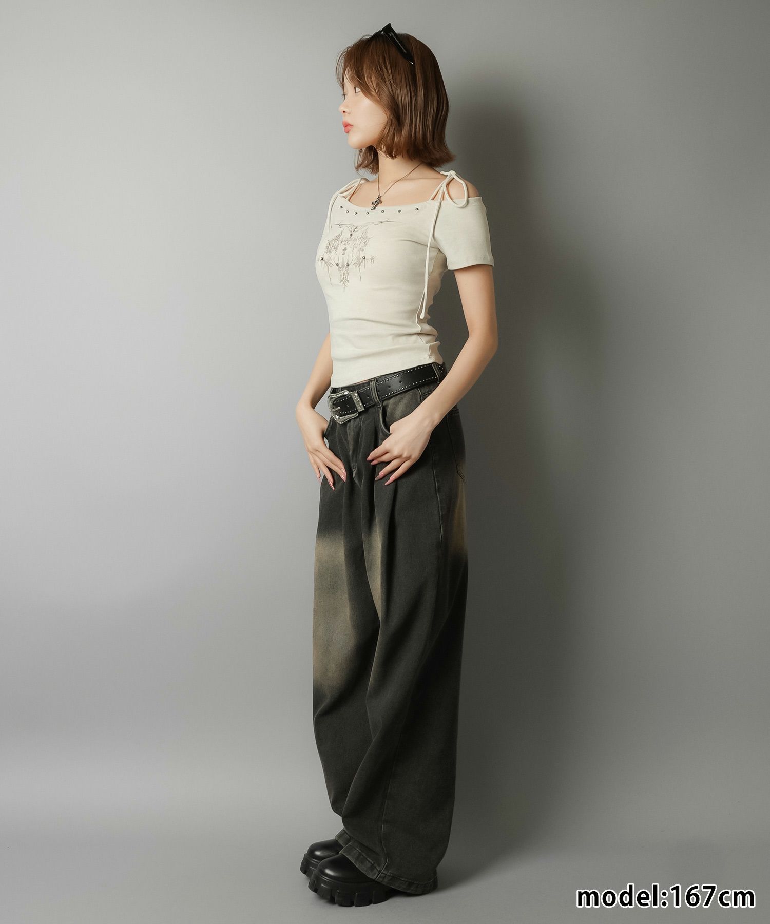 【肩リボンで女性らしさ+オフショルでぬけ感をプラス?】
