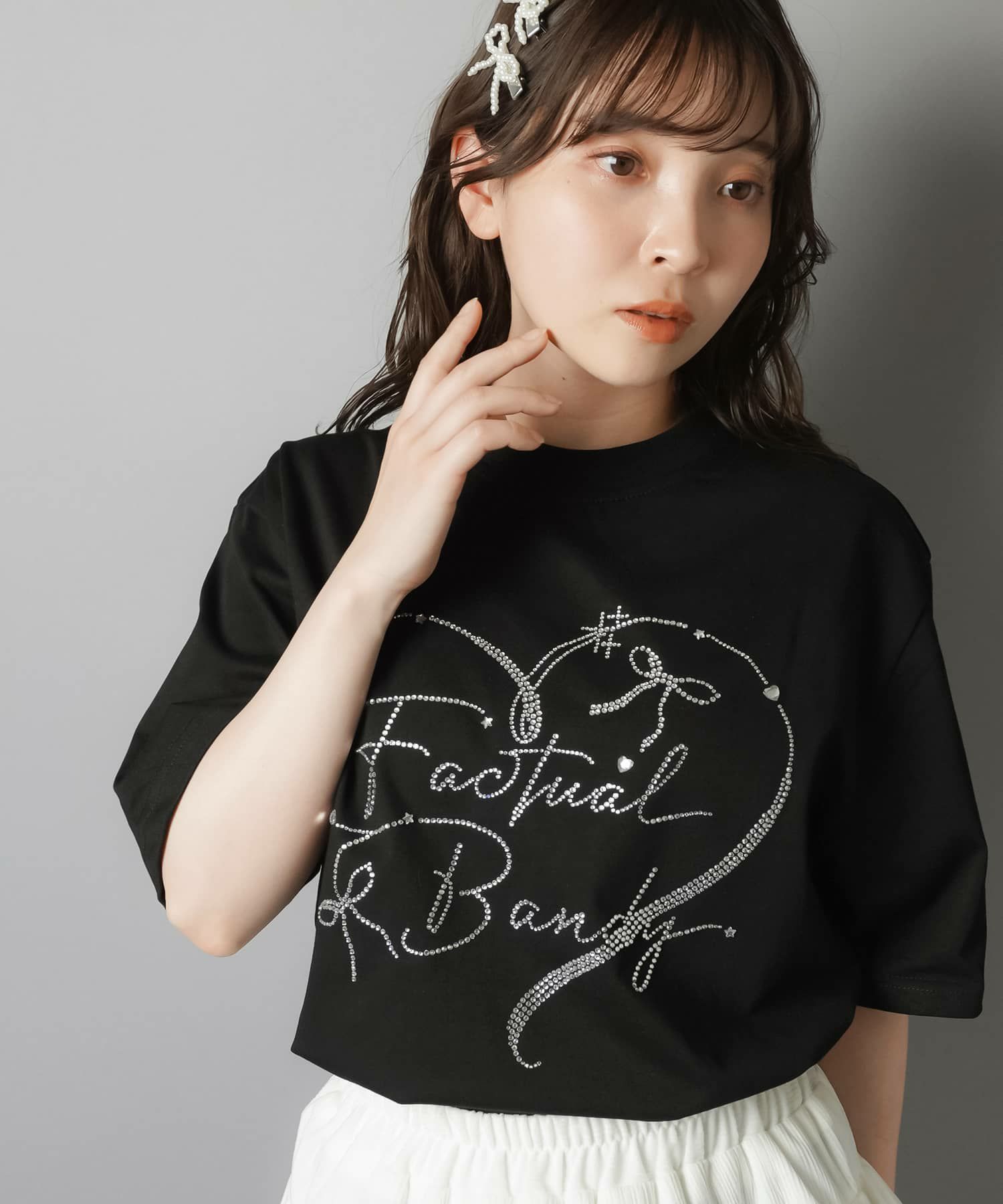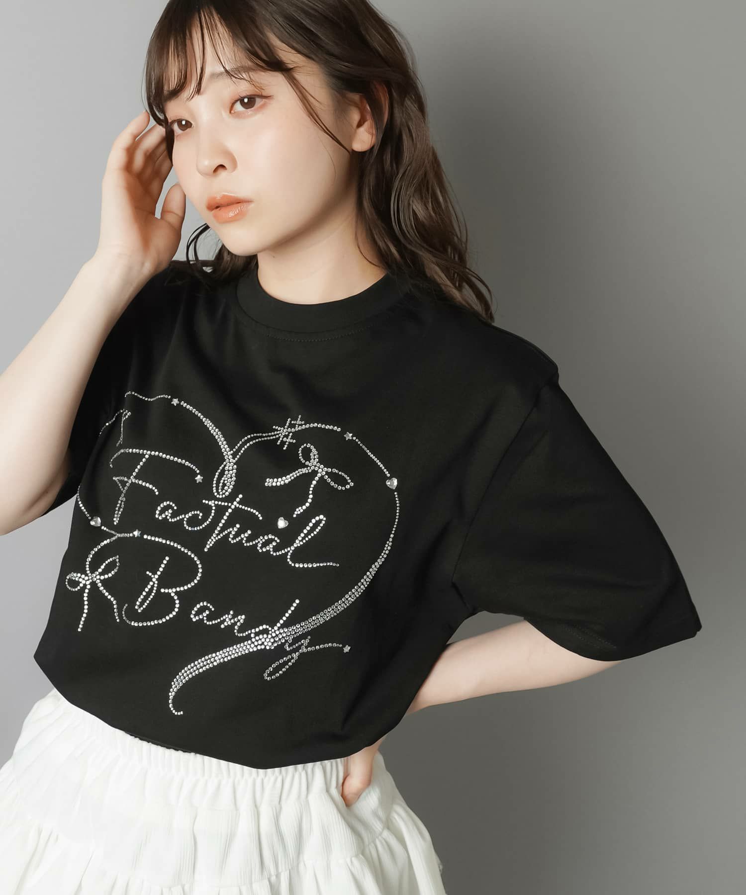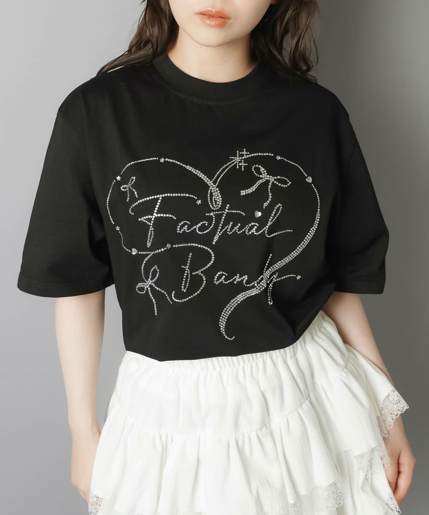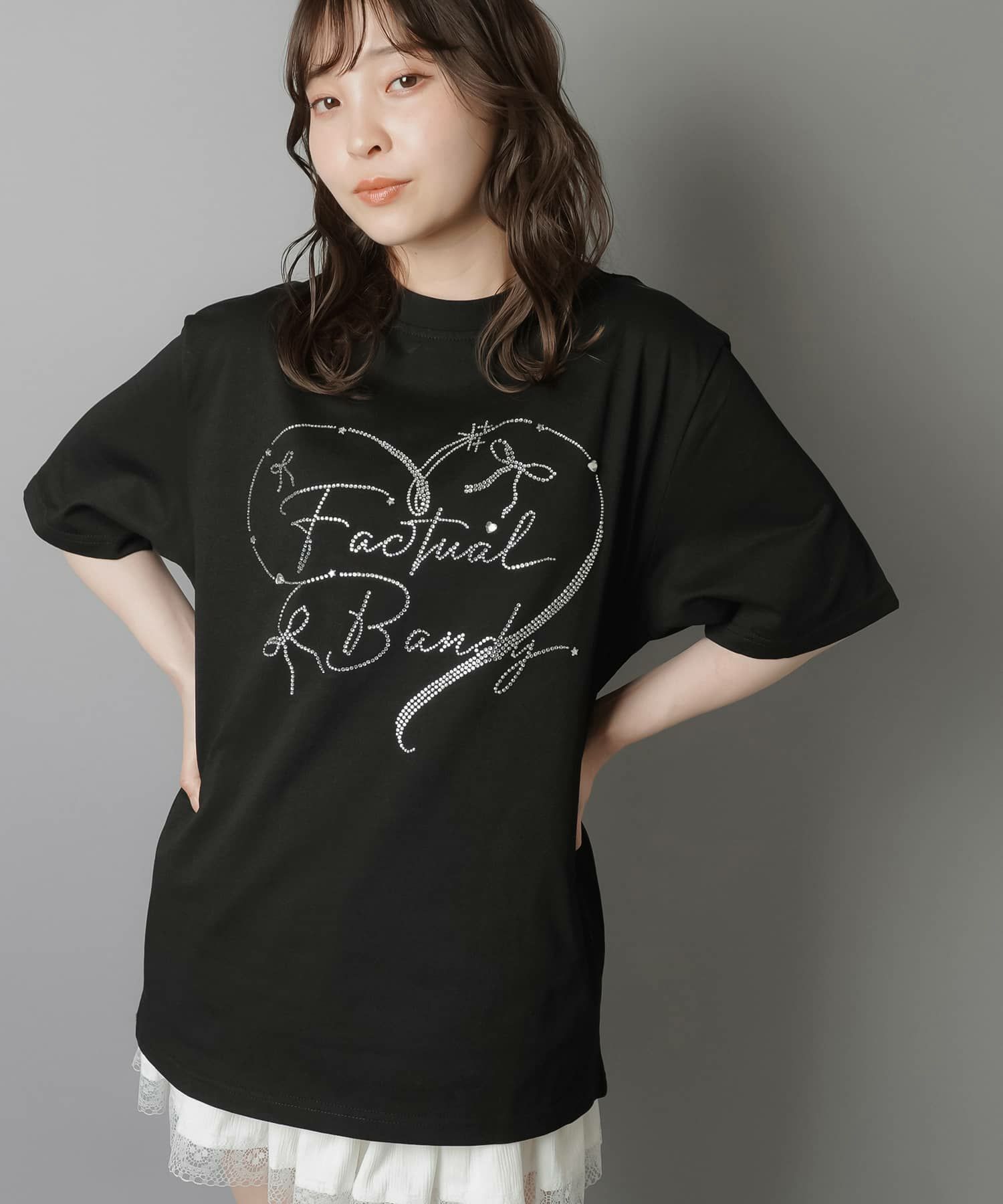 【84%OFF】半袖オーバーサイズTシャツ/ラインストーンハート