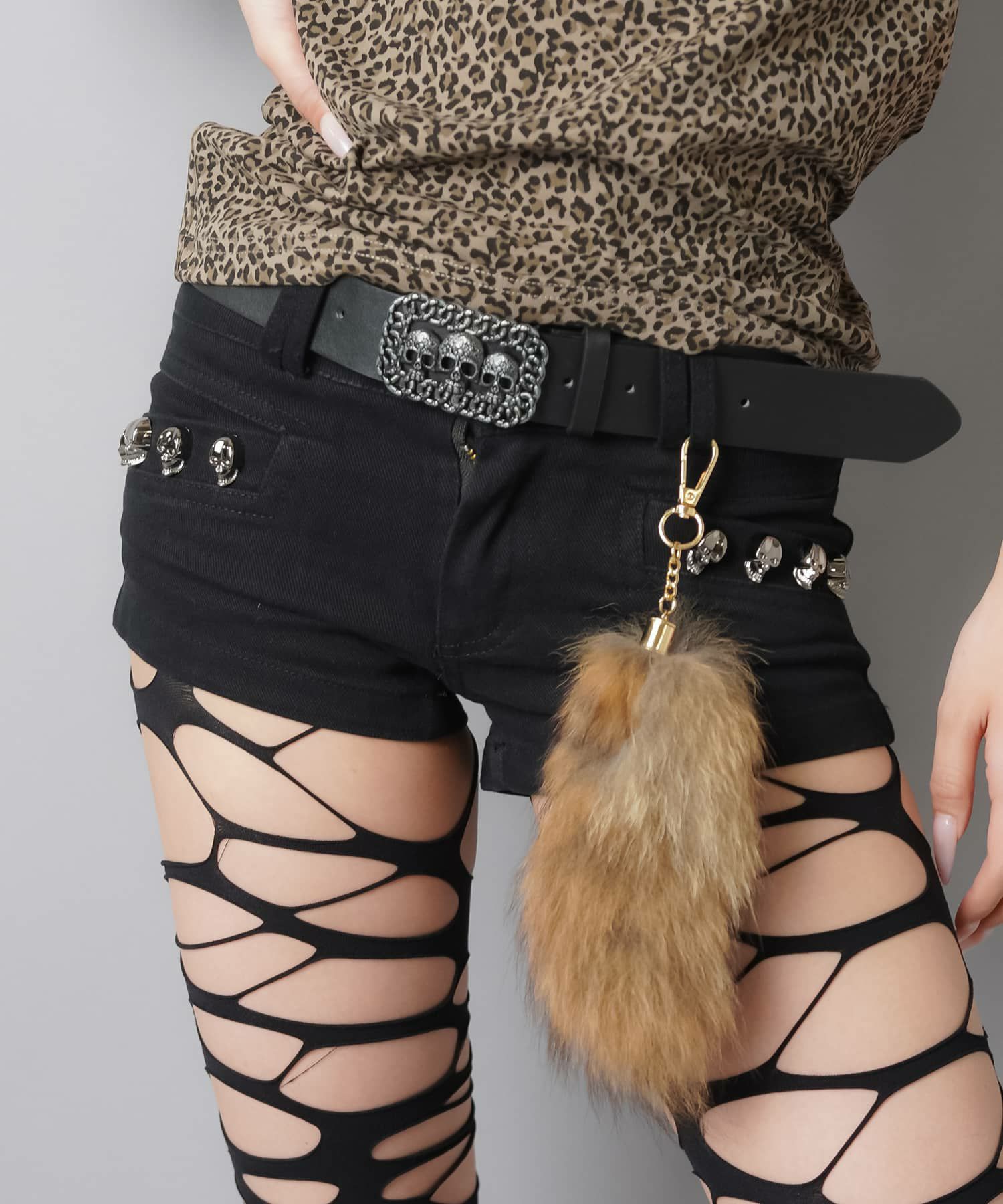 【44%OFF】デニム超ショートパンツ/スカルスタッズ/ベルト付き