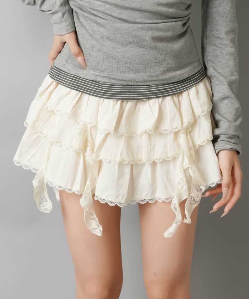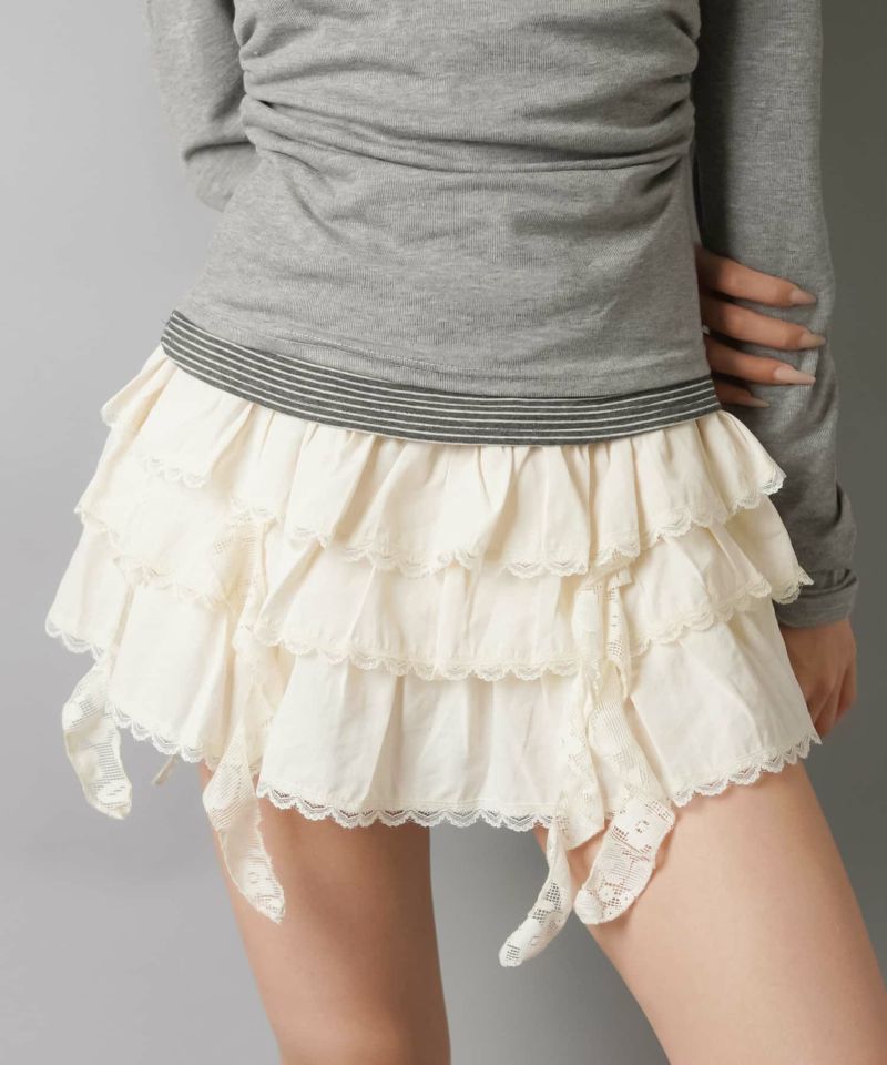 【34%OFF】フリルティアードミニスカート/イレヘム/インナーパンツ付き