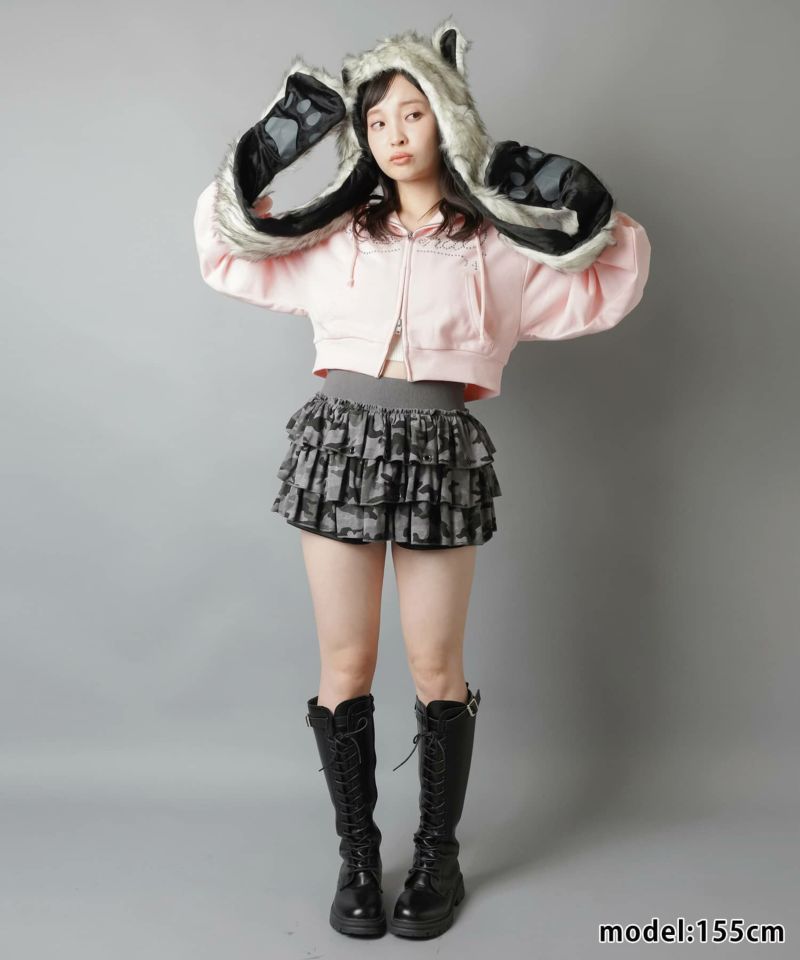 1:カモ柄(迷彩柄)やヒョウ柄の裏毛ティアード