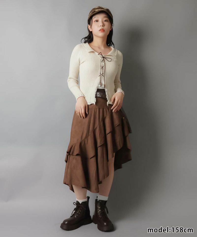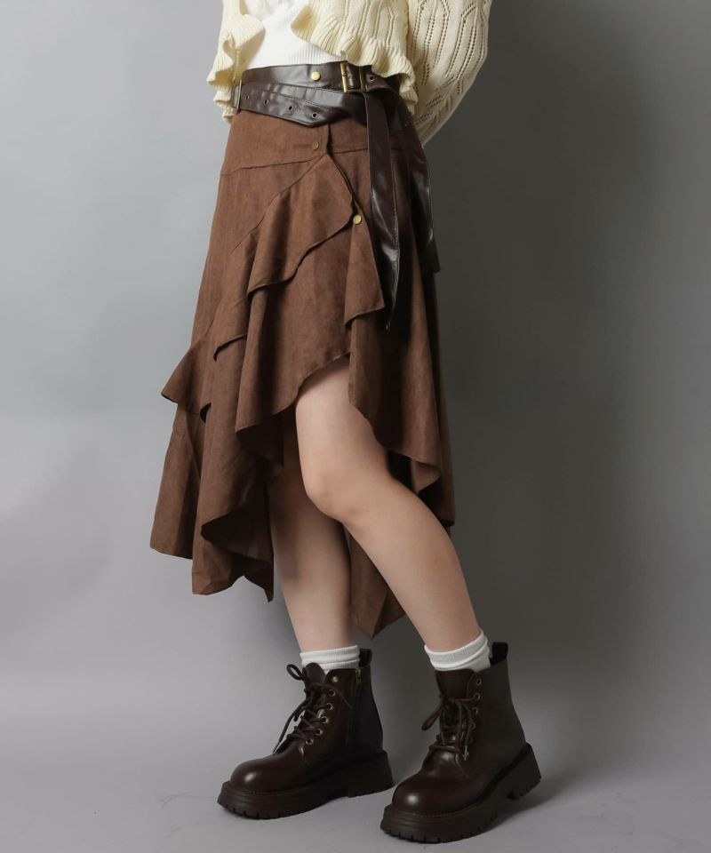 【75%OFF】スエードイレヘムミドルスカート/ベルト付き/#NEO森ガール