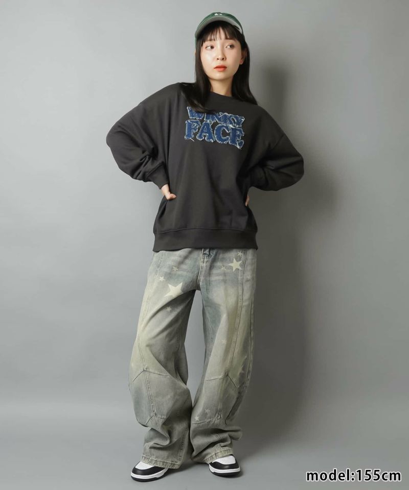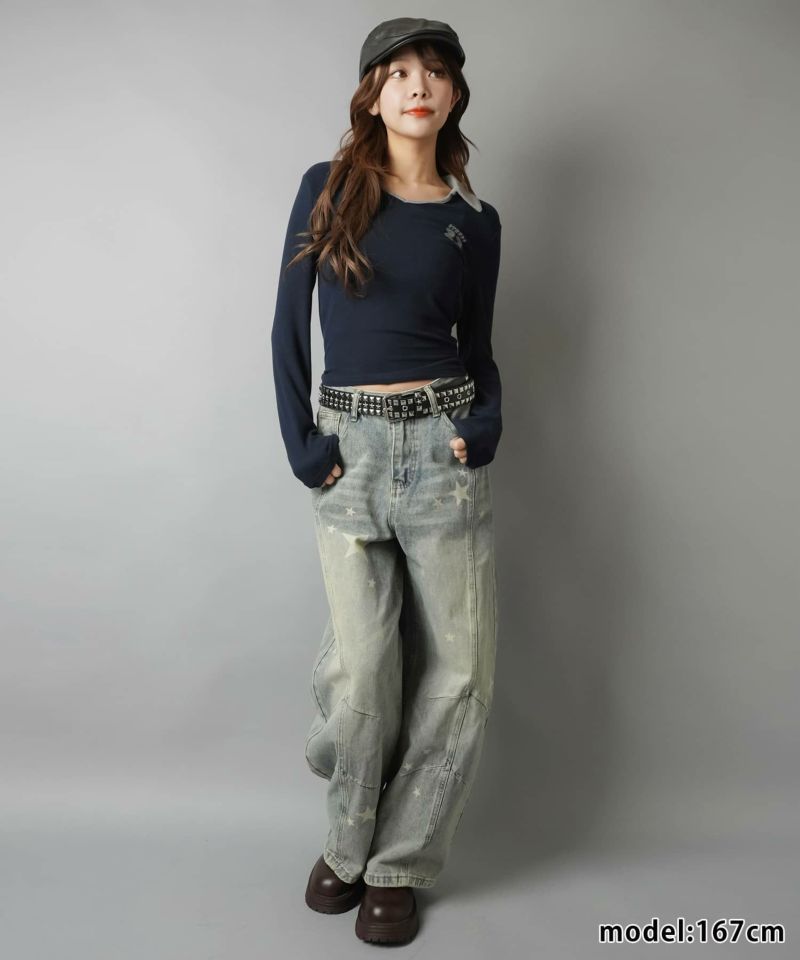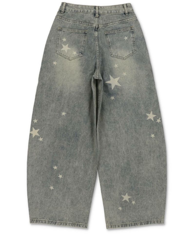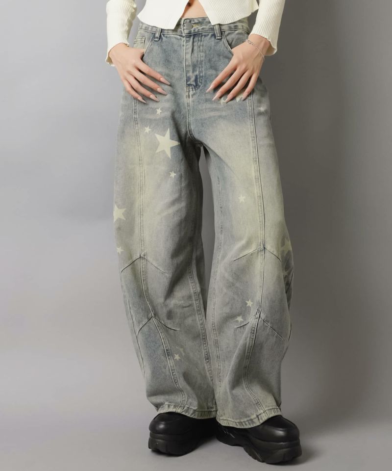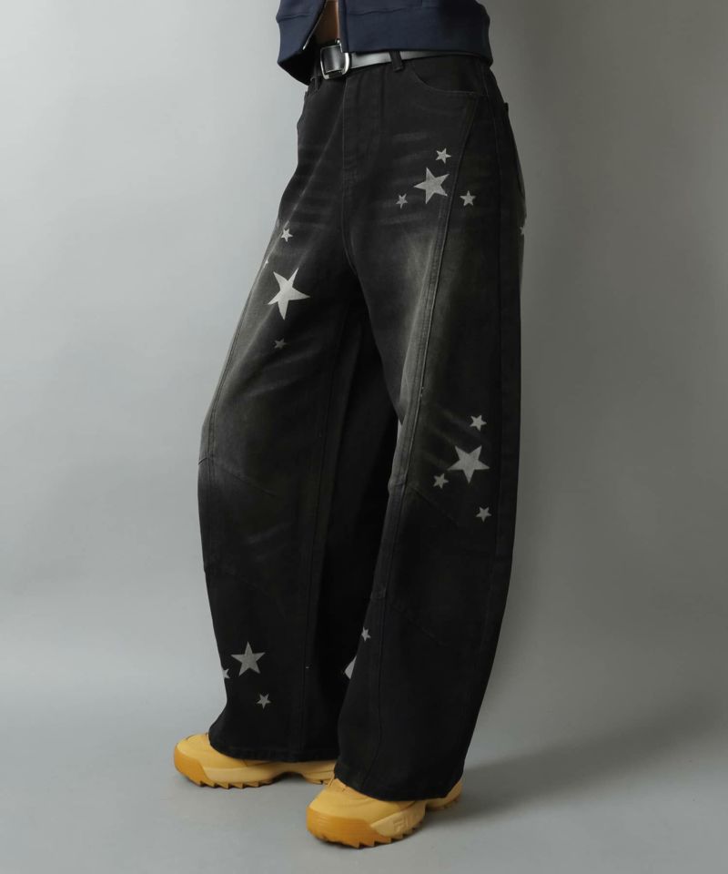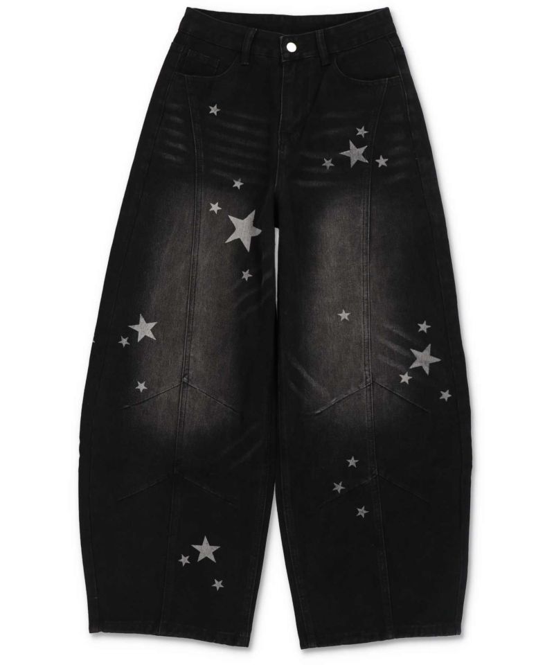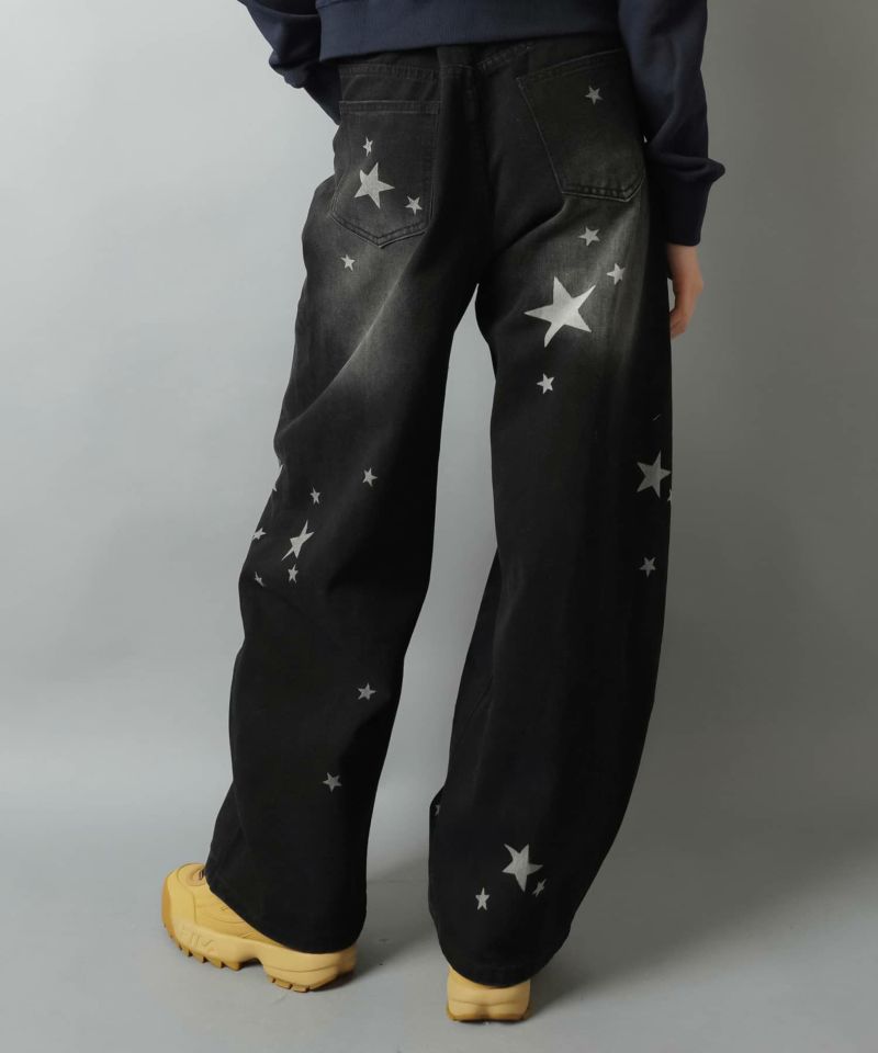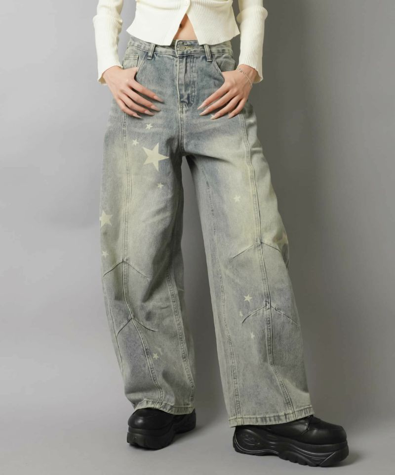 【34%OFF】デニムカーブパンツ/バレルレッグパンツ/スター/星柄