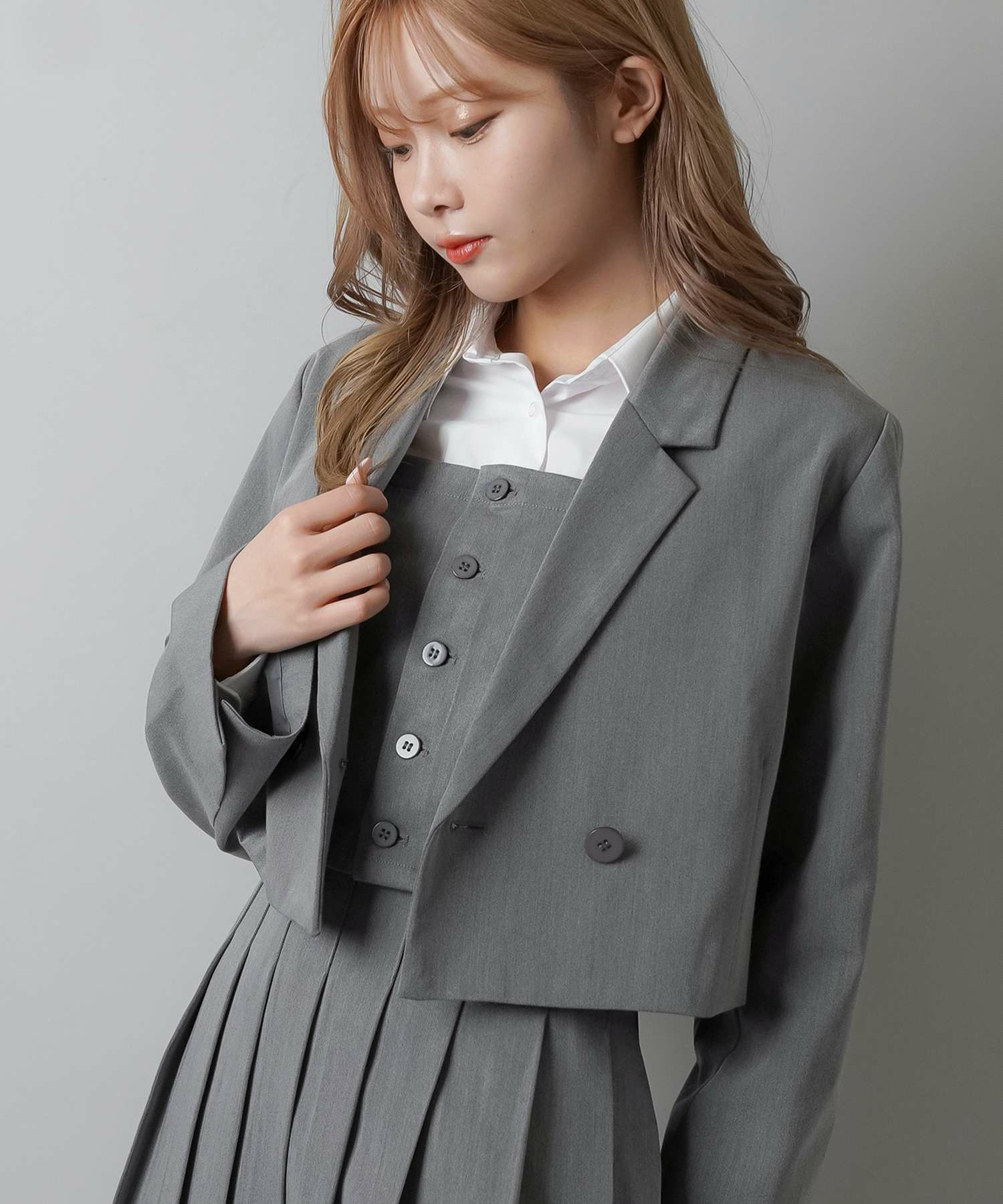 今回はショート丈ジャケット、ビスチェ、ミニスカートの3種類!