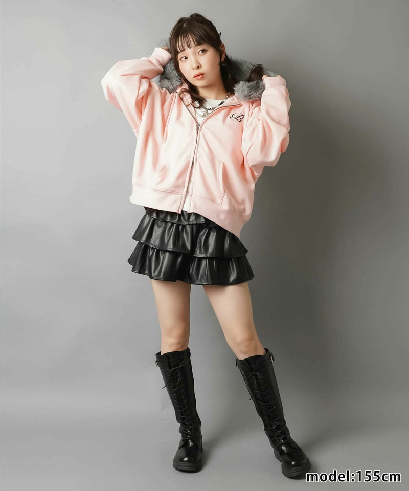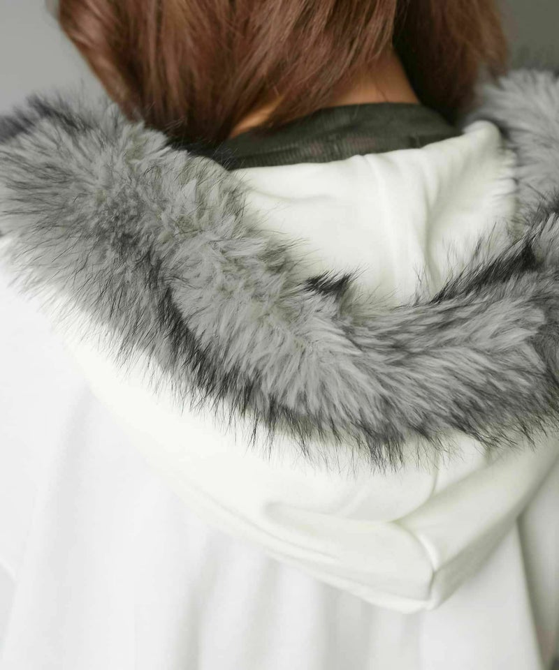 1:フードのフェイクファーがミックスでギャル感UP